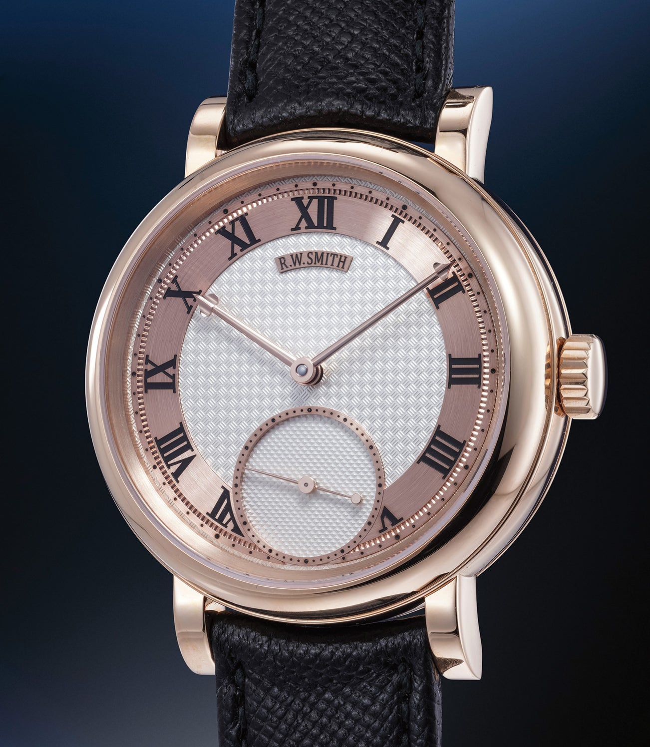 Following this triumph, Smith says he was “inundated with requests for a time-only piece.” And thus, the new Series 1 was born, displaying only the hours, minutes, and seconds via a subsidiary seconds dial. It was meant to be the quintessential gentleman’s watch, with all of the refinement, experience, and heritage of three hundred years of British watchmaking distilled into a single 38 or 40mm round timepiece – all painstakingly hand-built and hand-finished by Roger Smith and his few trusted colleagues.The present Series 1 in pink gold with pink gold chapter ring is only one of 3 pink gold models cased in 38mm and the only one made in this case/dial combination thus adding an even greater element of collectability.