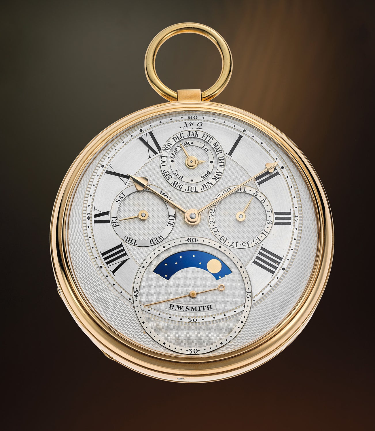 Dial signed R.W. Smith, movement signed Roger Smith, Bolton, and dial signed RWS. Case with British assay marks for Birmingham and 1998.