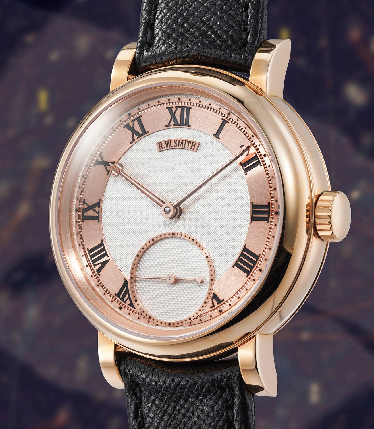 Following this triumph, Smith says he was “inundated with requests for a time-only piece.” And thus, the new Series 1 was born, displaying only the hours, minutes, and seconds via a subsidiary seconds dial. It was meant to be the quintessential gentleman’s watch, with all of the refinement, experience, and heritage of three hundred years of British watchmaking distilled into a single 38 or 40mm round timepiece – all painstakingly hand-built and hand-finished by Roger Smith and his few trusted colleagues. The present Series 1 in pink gold with pink gold chapter ring is only one of 3 pink gold models cased in 38mm, and the only one made in this case/dial combination, thus adding an even greater element of collectability.