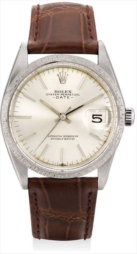 A rare white gold wristwatch with sweep centre seconds, date and textured bezel