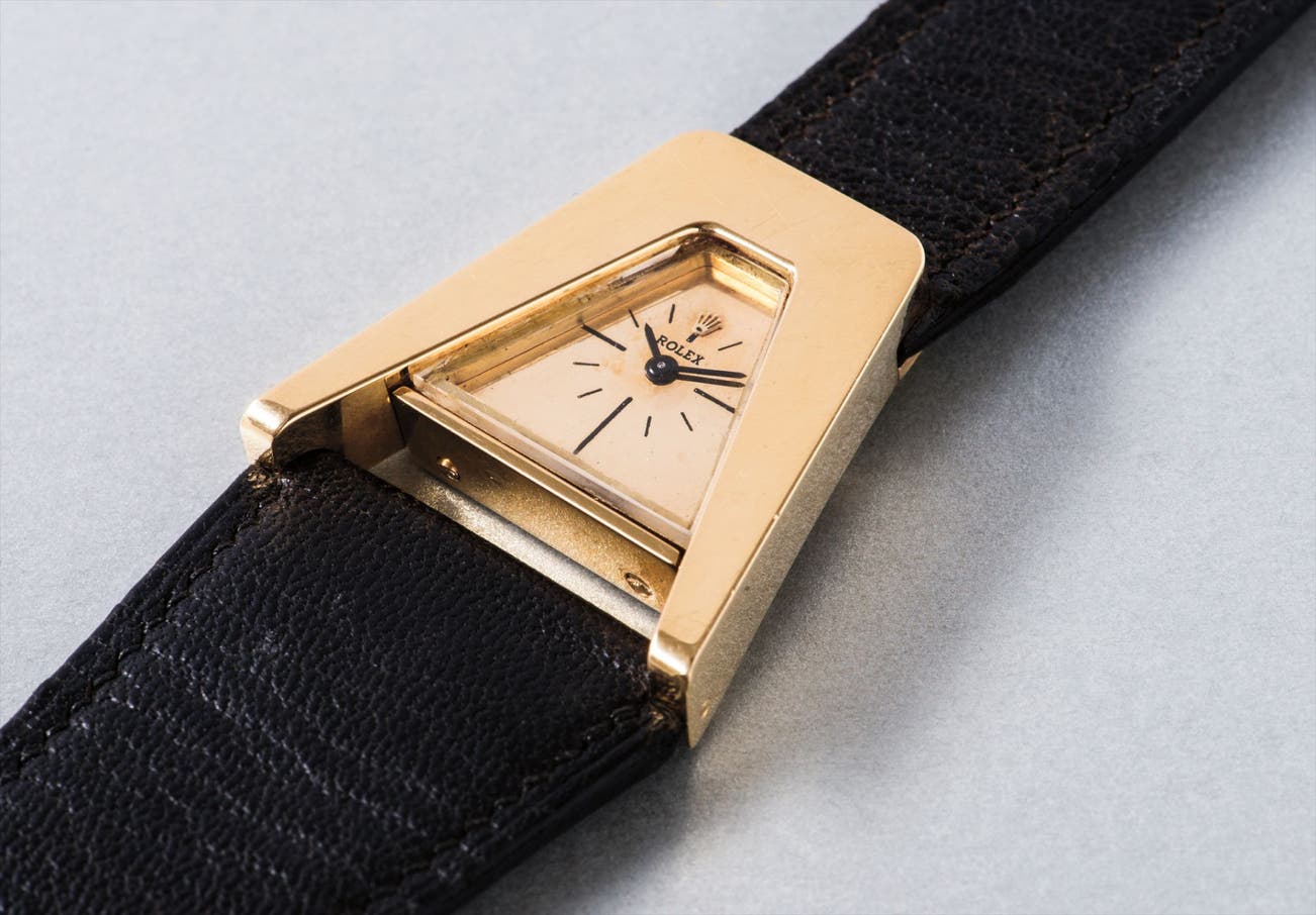 An probably unique and highly unusual asymmetrical yellow gold wristwatch
