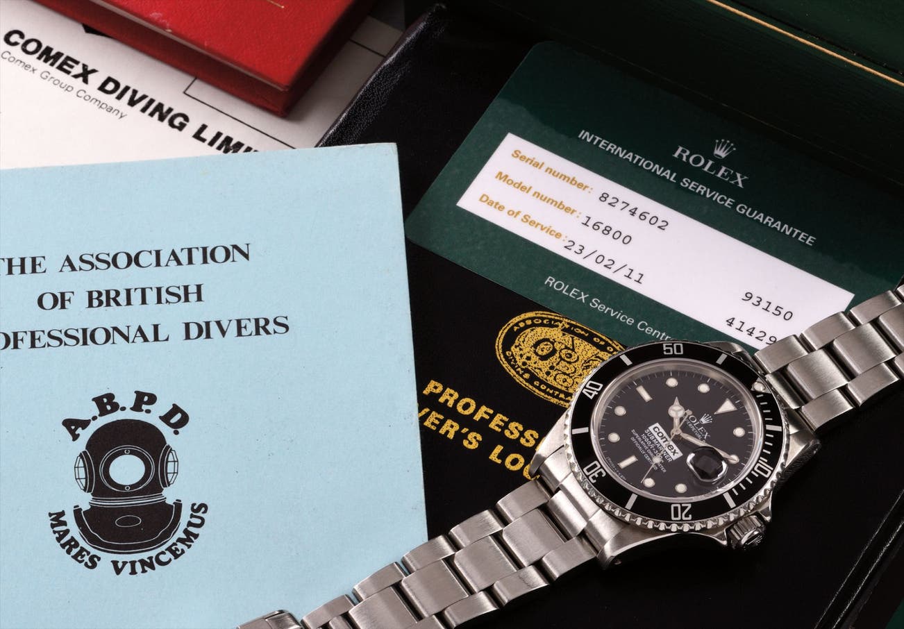 A rare and attractive stainless steel diver's wristwatch with date, bracelet, box and literature about the original owner's career, made for COMEX