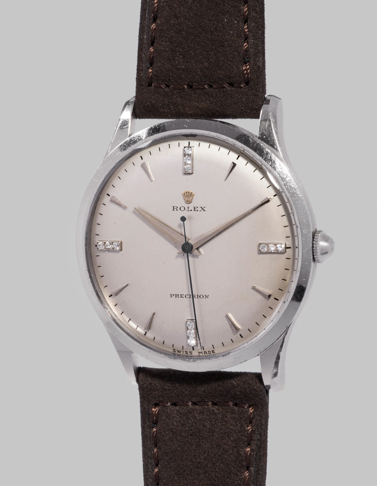 A trophy timepiece is one that is both rare and highly desirable, and while a time only wristwatch, this delightful reference 8029 can certainly be considered a a trophy for a new or experienced connoisseur. With minor traces of use, it was hardly worn, retaining its original factory finish with strong bevels, factory satin finished surfaces, and its overall proportions correct. The original dial looks stunning yet understated with the diamond numerals, making this rare and elegant 1950s wristwatch a treasure for both daily and evening wear.