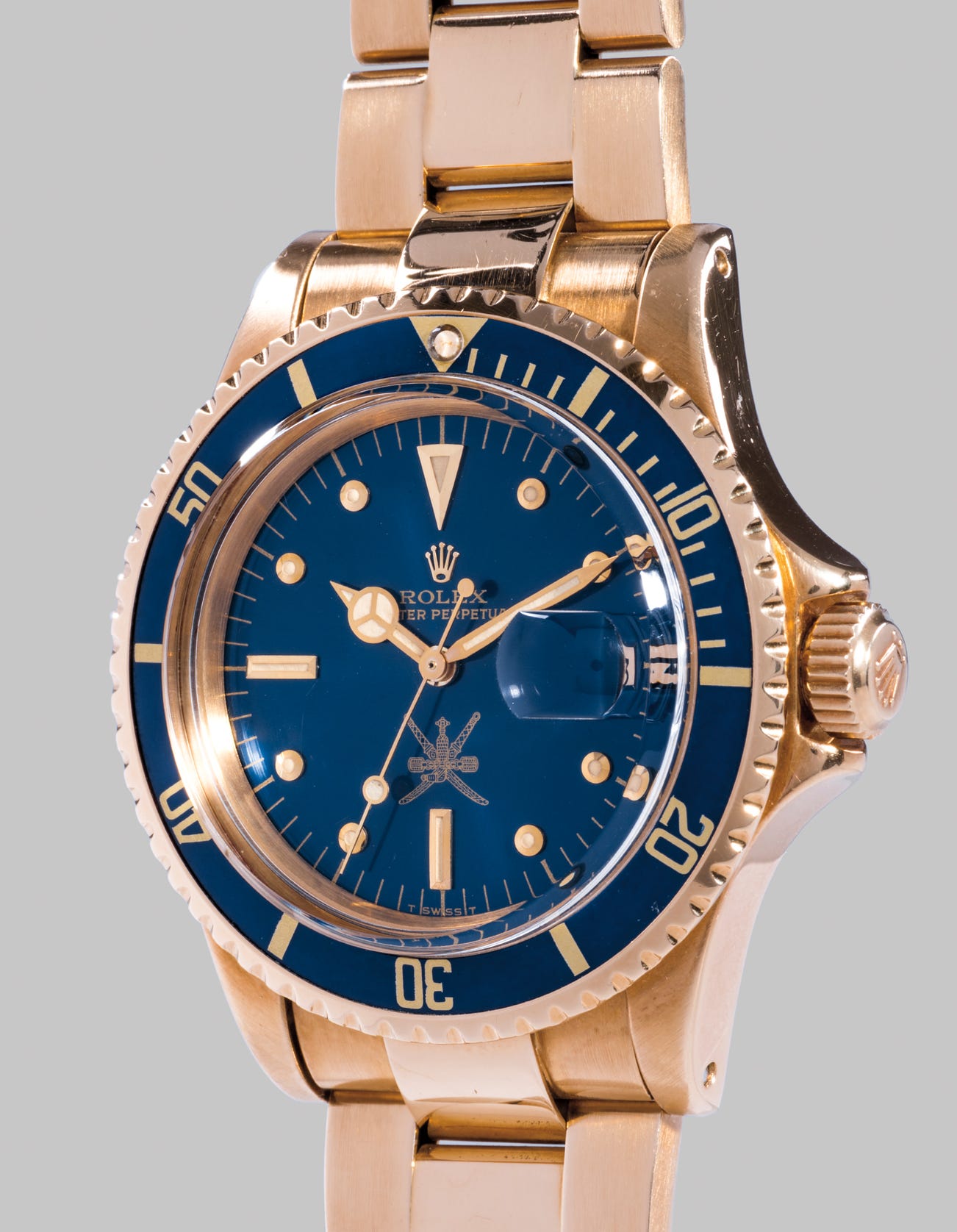 Watches fitted with "Khanjar" dials were made on special request from His Majesty Qaboos bin Said Al Said, the Sultan of Oman, and presented as gifts to his closest dignitaries and officials. Research and scholarship suggests that the Sultan commissioned most of his watches in the 1970s. It was an honor, and sign of respect, to be presented with a Rolex watch depicting the Omani state symbol. Many of these watches are cherished by their original owners, and passed down from one generation to the next. As a result, Rolex watches with "Khanjar" or "Qaboos" dials hardly appear on the market.