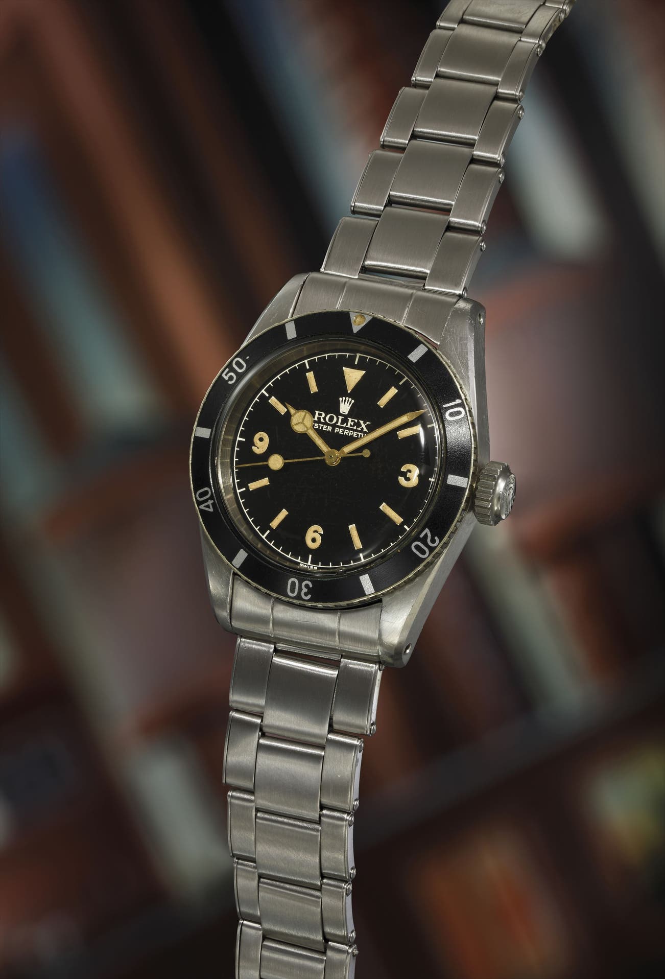 The watch has a masculine sporty appeal, and its well-proportioned case is enhanced by its early “bubbleback”-style case fitted with the Rolex caliber A296. These early Submariners feature a rotating bezel without minute markers, and the reference 6200, along with the 6205, were the first models to use the now well-known “Mercedes” style hands. Collectors speak of “grail” watches, and the reference 6200 is one such watch. Production numbers were extremely limited and their serial numbers range from 31.9xx to around 32.2xx. The condition of the present watch is extraordinary, preserved in original condition, with a gilt dial that retains its charismatic glossy surface. The breathtaking condition of the case, with its totally unpolished and hardly worn state of preservation, sharp crisp lines, and factory original bevels, make it one of the finest examples to ever appear at auction. A rare treasure that would certainly be the crown jewel of a Rolex sports watch collection, but also an ultimate trophy watch for a collection spanning icons of horology.