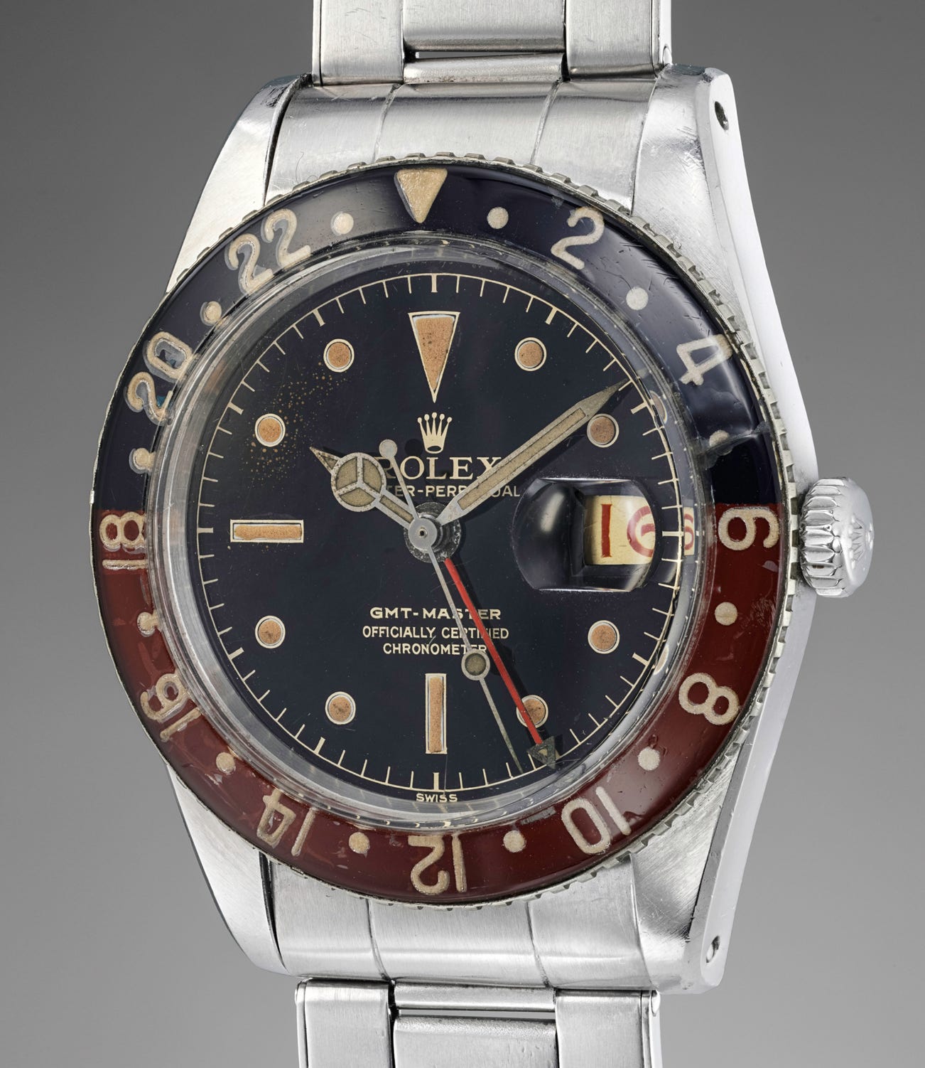 In an age of jet travel and international intrigue, the reference 6542 was a watch for all sophisticates - its international allure lead the producers of the 1964 James Bond film, “Goldfinger”, to outfit the lead female criminal with the identical model GMT-Master. This extraordinary watch has remained close to factory specs since its manufacture in 1959. It is a watch that can be appreciated by all, and represents a rare opportunity for the discerning collector.