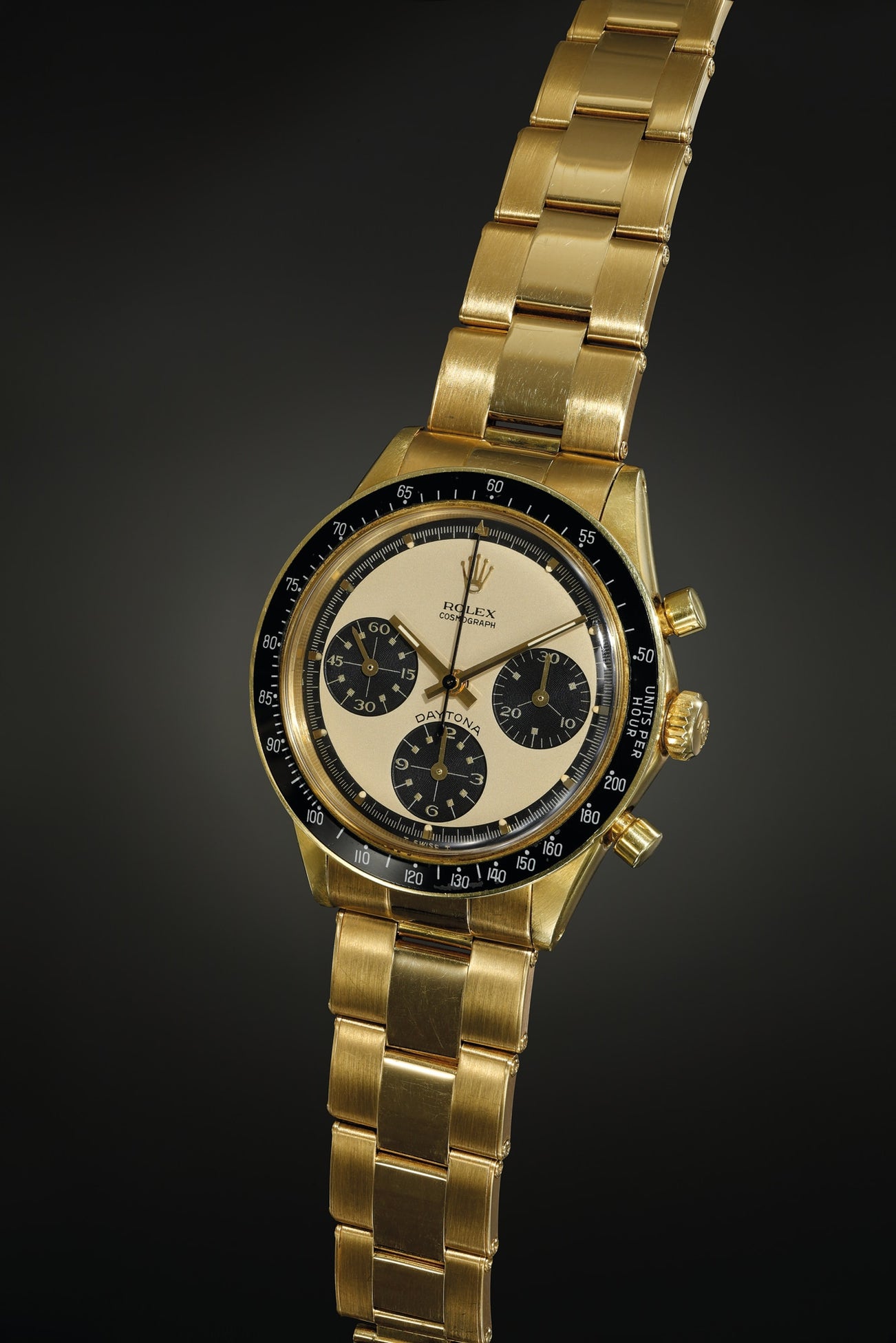A rare, beautiful and well-preserved yellow gold chronograph wristwatch with champagne ‘Paul Newman’ dial and bracelet