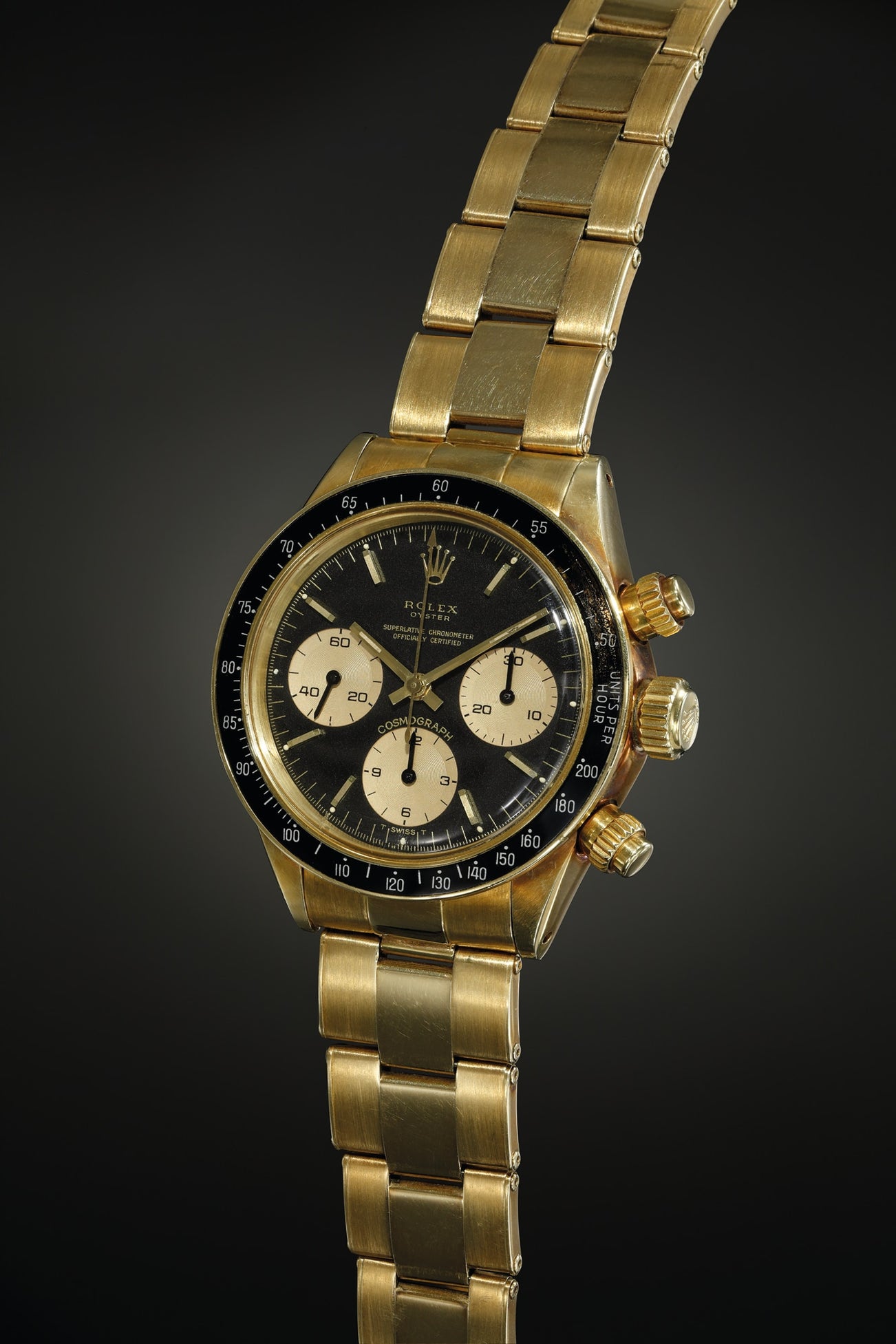 Starting from the early 1970s, Rolex began to power its gold Oyster Cosmograph watches with chronometer certified movements. Whilst earlier dials displayed “Rolex Oyster Cosmograph” only, later models featured a different layout that referenced the “COSC” movement.