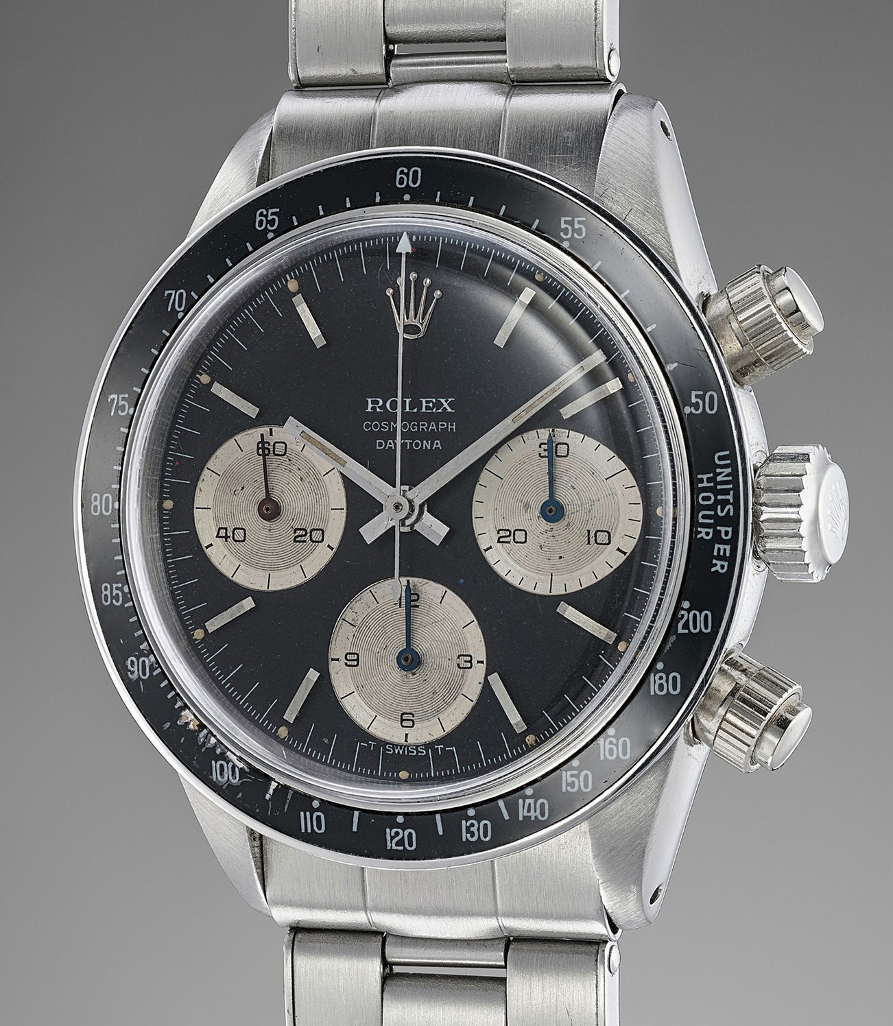 If furthermore retains all the correct attributes such as the Mk 1 bezel and pushers, which this reference is particularly known for. The inside case back is further stamped 6239 which is correct.
