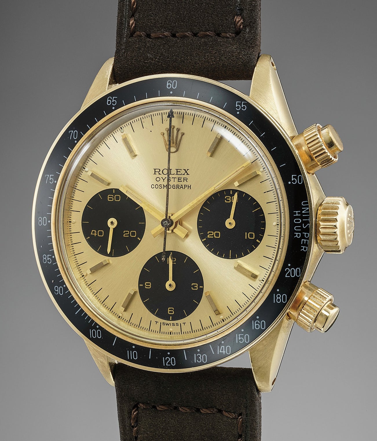 The references 6263 and 6265 were introduced into the market in approximately 1969, as an upgrade to the 6240, the first Daytona to feature screw down pushers. Originally presented in stainless steel these references were offered in a flamboyant gold livery starting the early 1970s.