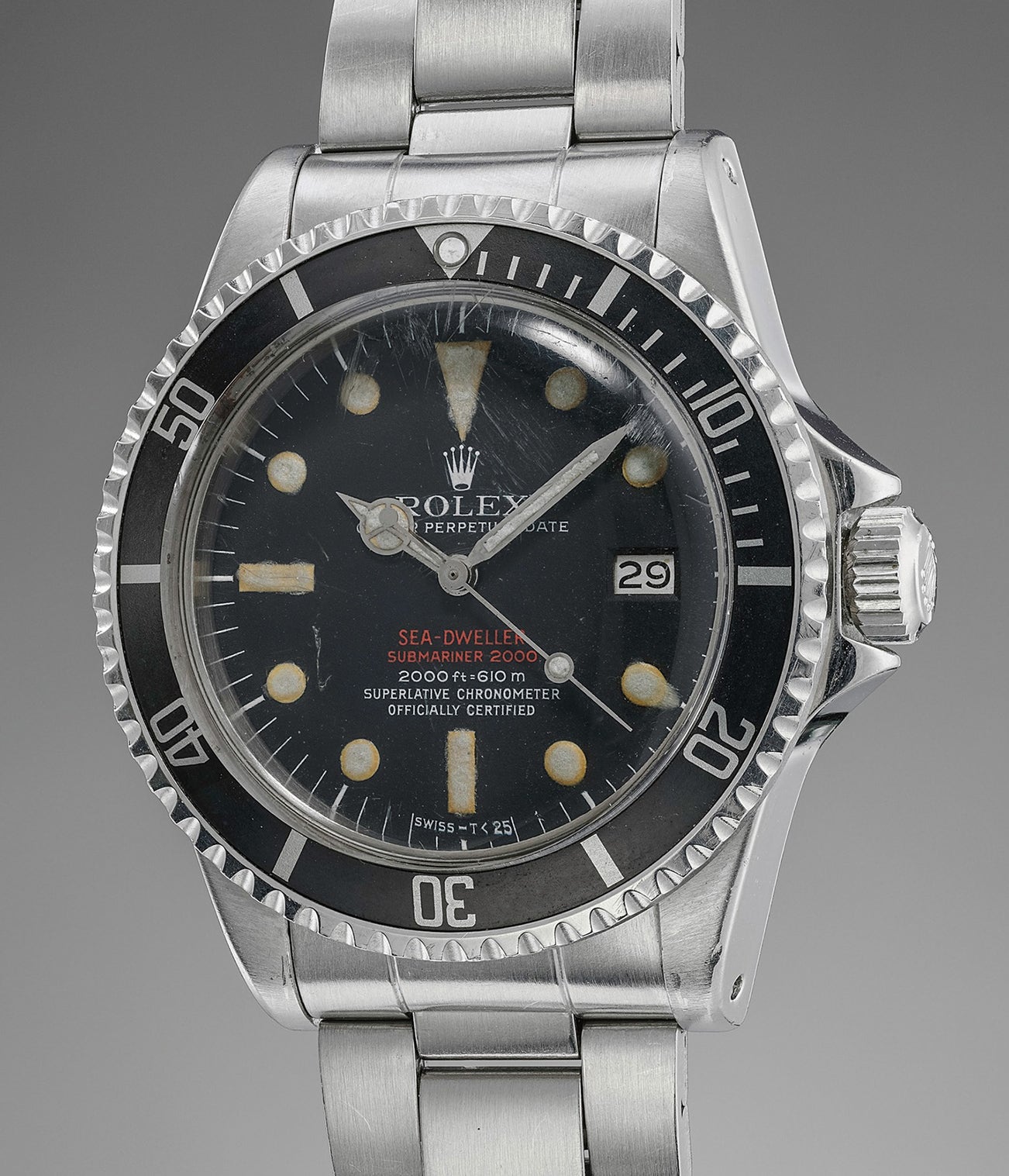 The present piece belongs to this line of highly advanced divers’ wristwatches, and it is a specimen from the so-called “Double Red” series, featuring two lines of red text. This detail would be abandoned in favor of full white graphics: the so-called “Great White” Sea-Dweller in 1977. Interestingly, the first examples of reference 1665 bear either the last three digits or - such as the present watch - the full serial number inside the caseback, a highly unusual detail for a standard production Rolex wristwatch. Normally, such a practice was adopted by the company for special order timepieces.
