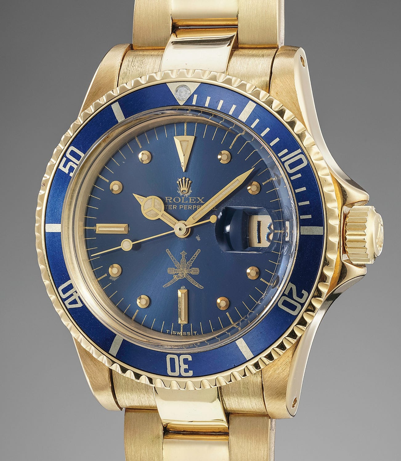 Only a handful of yellow gold Submariners made for the Omani market have appeared on the market thus far, highlighting the utter rarity of the model. It is highly important to note that the serial number is stamped and repeated on the case back, denoting the watch was made upon special order from Rolex, which we see on Omani market watches.