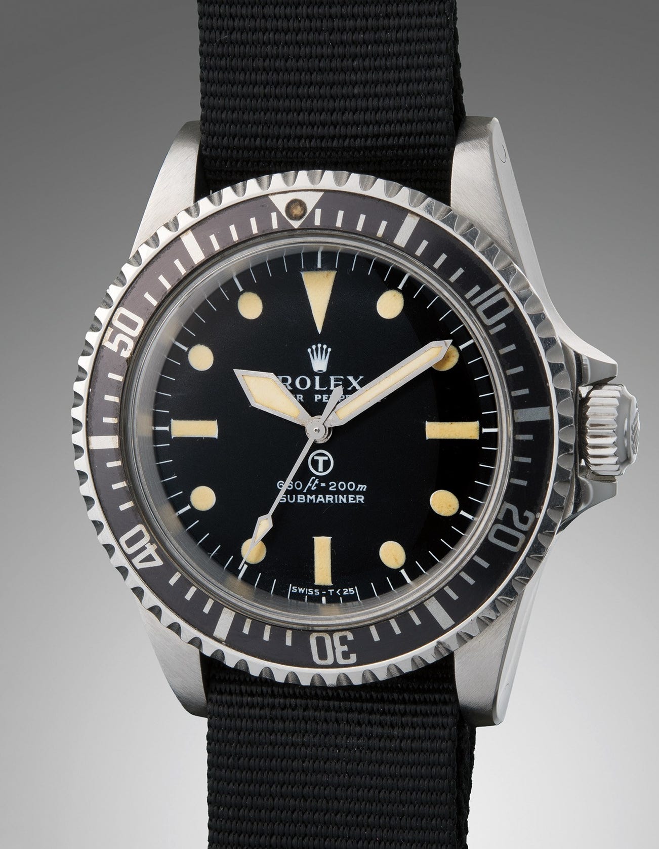 When decommissioned, they were sold by the MOD during the 1980s, and purchased by civilians and dealers who often replaced or removed the military-specific components - the encircled T dial, sword hands, 60’ bezel, engraved case back, and fixed spring bars - to transform them into more commercial, “civilianized” Submariners. Thus, very few MilSubs have survived with their “military-spec” configurations.