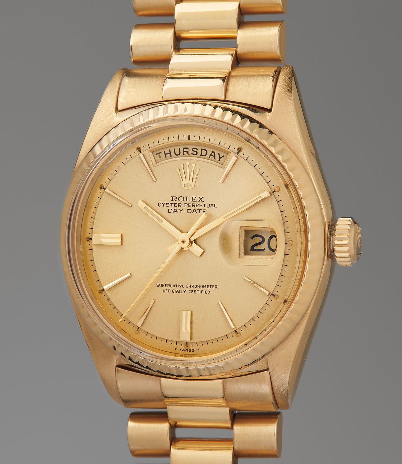 The story of this important Rolex begins in the late 1960s. While attending the Canada Cup in Tokyo in 1966, Mr. Nicklaus was offered a watch of his choice during a Rolex cocktail event that he attended with golf icons Gary Player and Arnold Palmer. Mr. Player, who was sponsored by Rolex at the time, recommended that Mr. Nicklaus choose the gold Day‐Date on display. Having never previously owned a watch, Mr. Nicklaus decided to take his friend’s advice. Mr. Nicklaus received his golden Rolex Reference 1803 — aptly matching his famous moniker, Golden Bear — the following year in 1967, the same year he won his second U.S. Open and set the U.S. Open scoring record. Although he eventually acquired a number of watches throughout his lifetime, Mr. Nicklaus has revealed that this Rolex is the very first watch he owned, and a wristwatch that he wore daily, barely ever leaving his wrist for over 50 years.