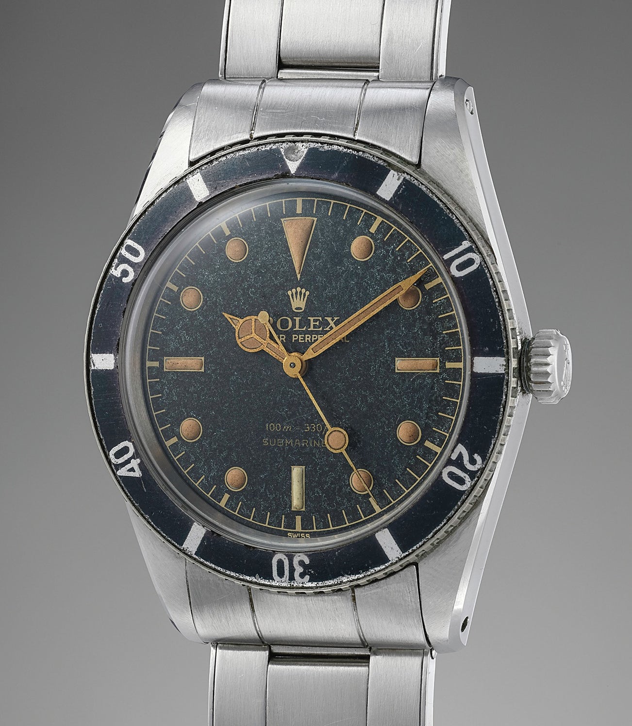 Preserved in stunning and exceptional condition, this reference 6536/1 is an incredibly original and well-preserved example. Boasting thick bevels, a robust case and strong proportions, it is evident that this timepiece has seen extremely little, if any intervention throughout its lifetime. The dial is preserved in equally excellent and impressive condition. The luminous marker at 6 o'clock is most notably much brighter than the other lume plots. This feature allowed divers to orient themselves in the dark. Other impressive features are the original bracelet, stamped for the fourth quarter of 1956, along with the original Brevet crown.