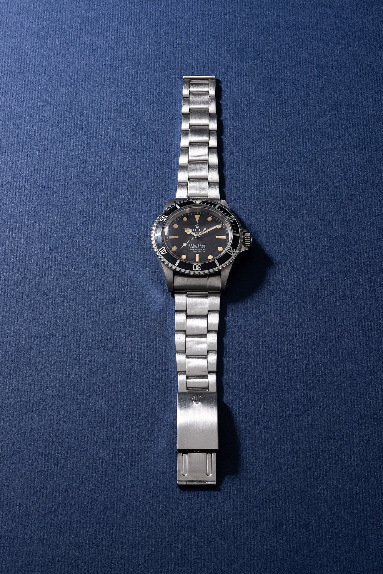 The most remarkable point of the watch is, however, the luminous materials that were applied to the hour markers and hands. In 1964, Rolex began applying tritium luminous material on gilt dials, signing chanced from “Swiss” to “Swiss – T<25” & “T-Swiss-T”. The matte dial with a new generation of tritium luminous was introduced in 1967, in which the tritium signings include “T Swiss T<25” or “σ T-Swiss-T σ”. The present example, made with a matte dial in the transitional year, appears to have been applied with the tritium luminous material for gilt dial, ergo reacting strongly under UV light. It is also worth noting that the tritium signing is “Swiss – T<25”. Made in the transitional year, this piece exemplifies Rolex’s never-ending pursuit in perfecting their watches.