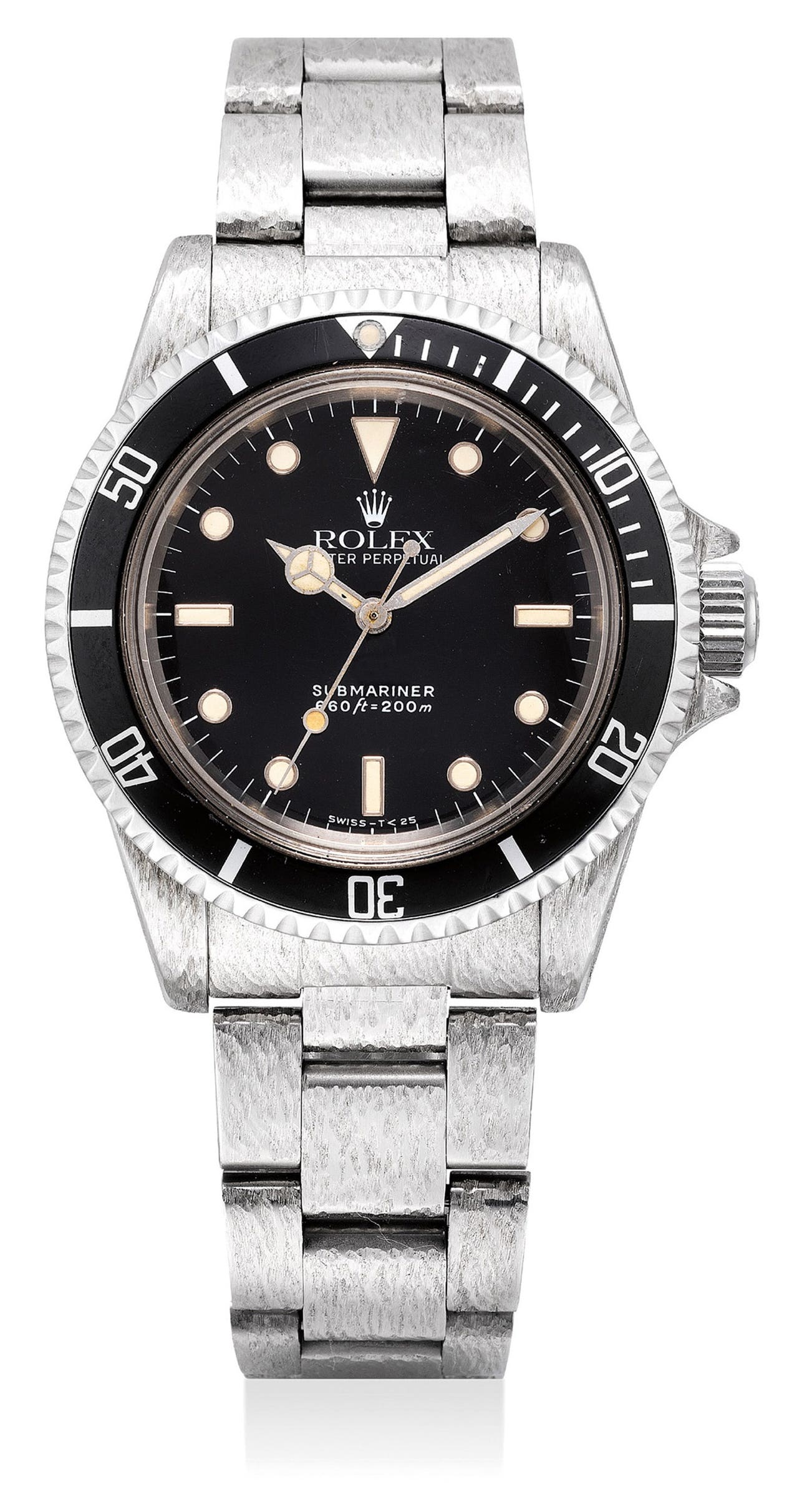 A fine stainless steel wristwatch with bark finish, bracelet, original guarantee and presentation box