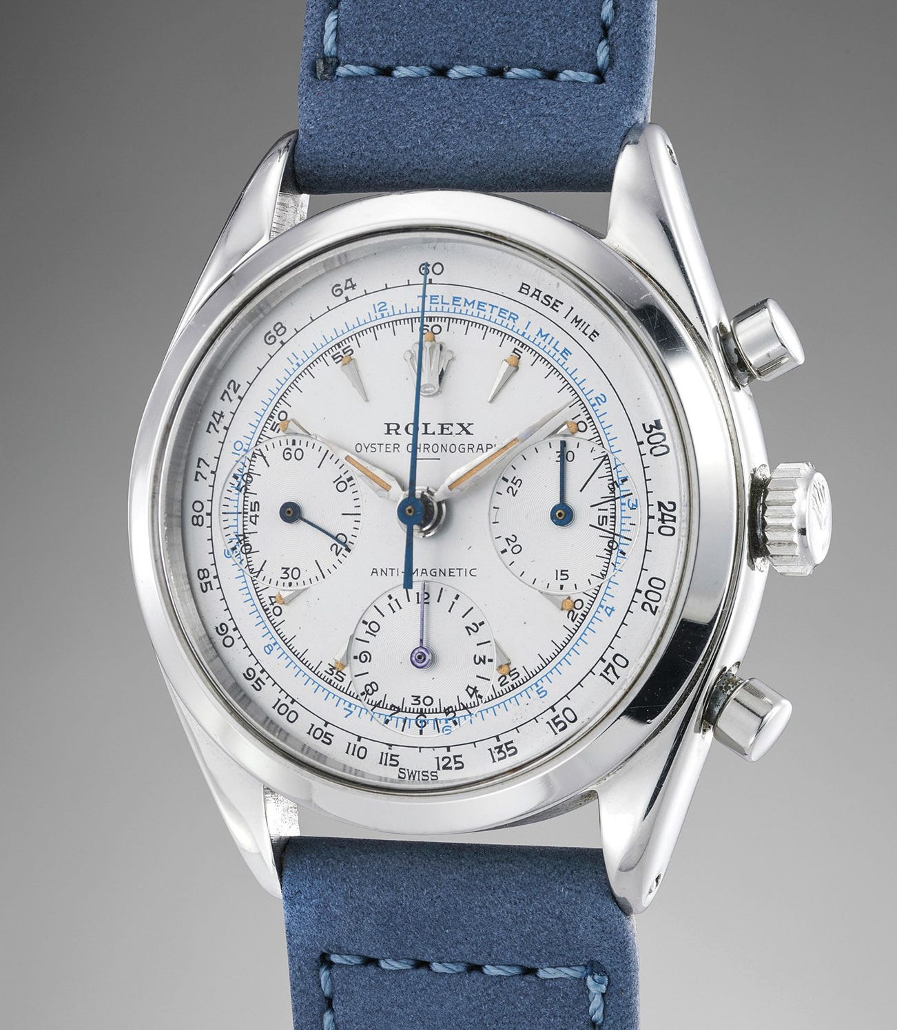 A subtle detail truly sets this watch apart: the underline below the Oyster Chronograph signature, which collectors and historians believe was used to signify a transition from radium to tritium on the dial. The underline is absolutely correct when one considers the serial number.