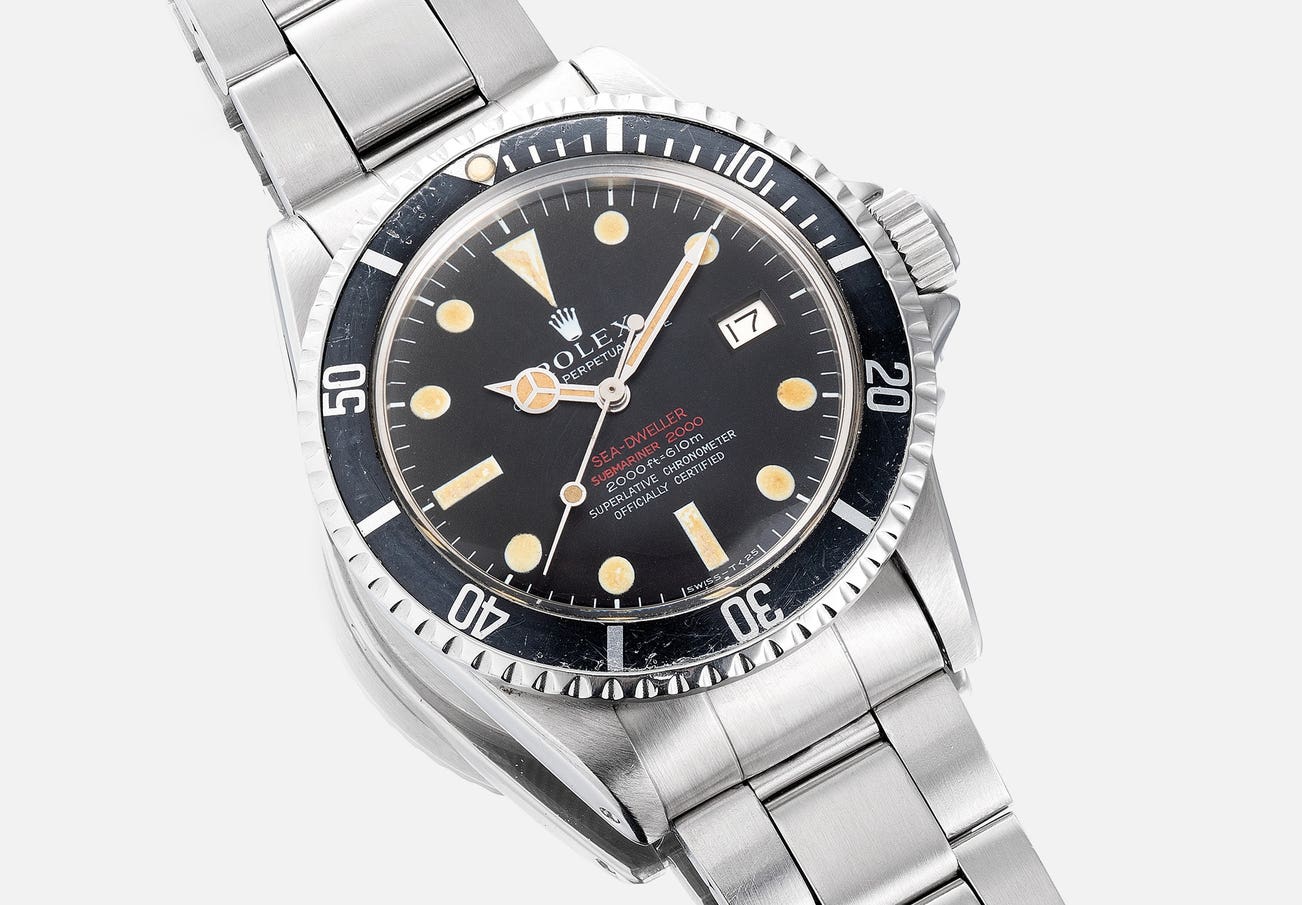 The red wordings of this dial, “Sea-Dweller, Submariner 2000” is dubbed by watch enthusiasts as “Double Red”. The present watch is fitted with a Mark II dial. Bearing a 1.7 million serial number, the present watch was manufactured in circa 1968 and is preserved in overall excellent condition. The luminous materials have aged to a great yellow patina, bestowing upon the watch an unmissable vintage appearance.