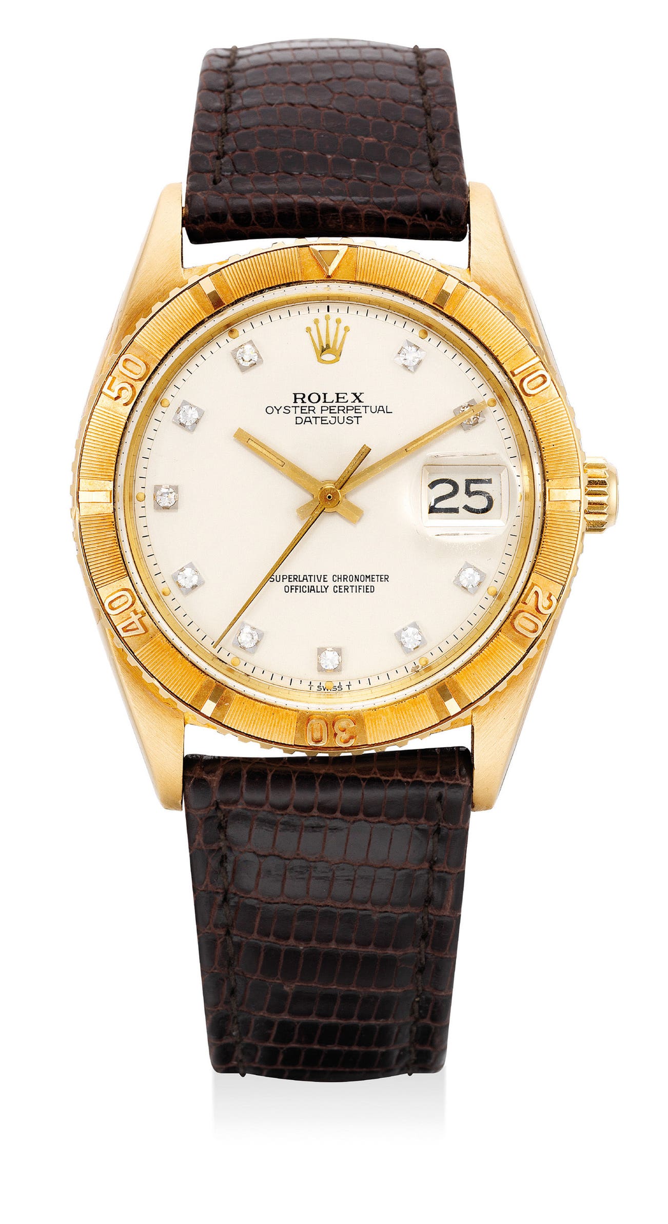 The present example is a beautiful example of a Rolex “Thunderbird” in yellow gold and further charmed by a rare diamond-indexed dial. Presented in excellent overall condition, the present example is a fantastic opportunity for collectors to acquire a luxurious wristwatch with a military background.
