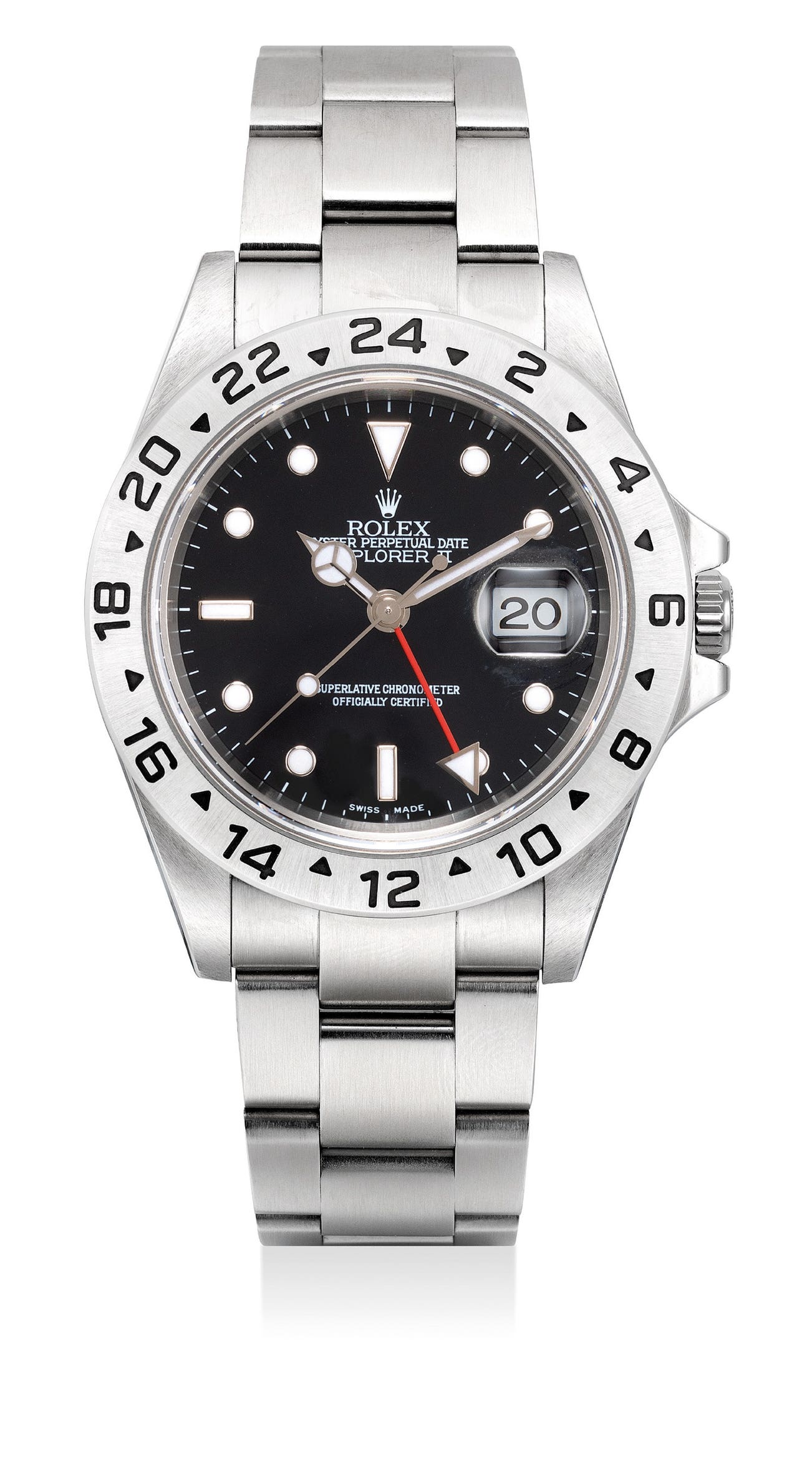 The present example of a Rolex Explorer II reference 16570 with a black dial is presented in excellent overall condition and further charmed by the full set of accessories that came with the watch.
