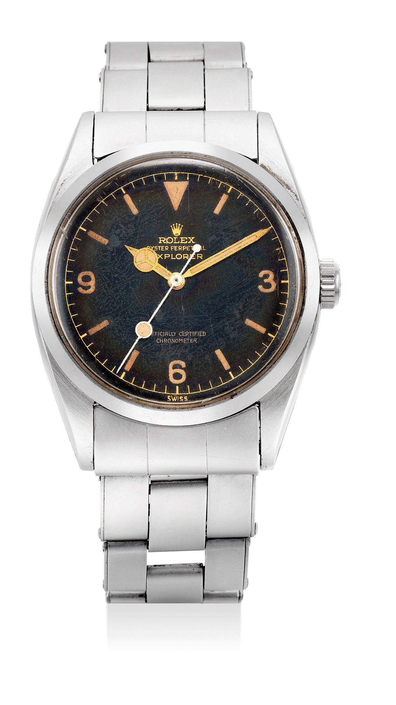 The watch is accompanied by the original Guarantee dated October 15, 1957 and stamped AFEX for the Air Force Exchange. It remains in exceptional condition, the case proportions are strong and the lug bevels relatively sharp. The watch is presented with a lovely aged dial that is fully intact. The Explorer stands with other iconic Rolex wristwatches as a testament to the genius and innovation of Hans Wildorf, as well as the drive to create tool watches that not only withstood the environment, but also the test of time. Today, the Explorer is a modern classic and is as wearable now as it was over sixty years ago.