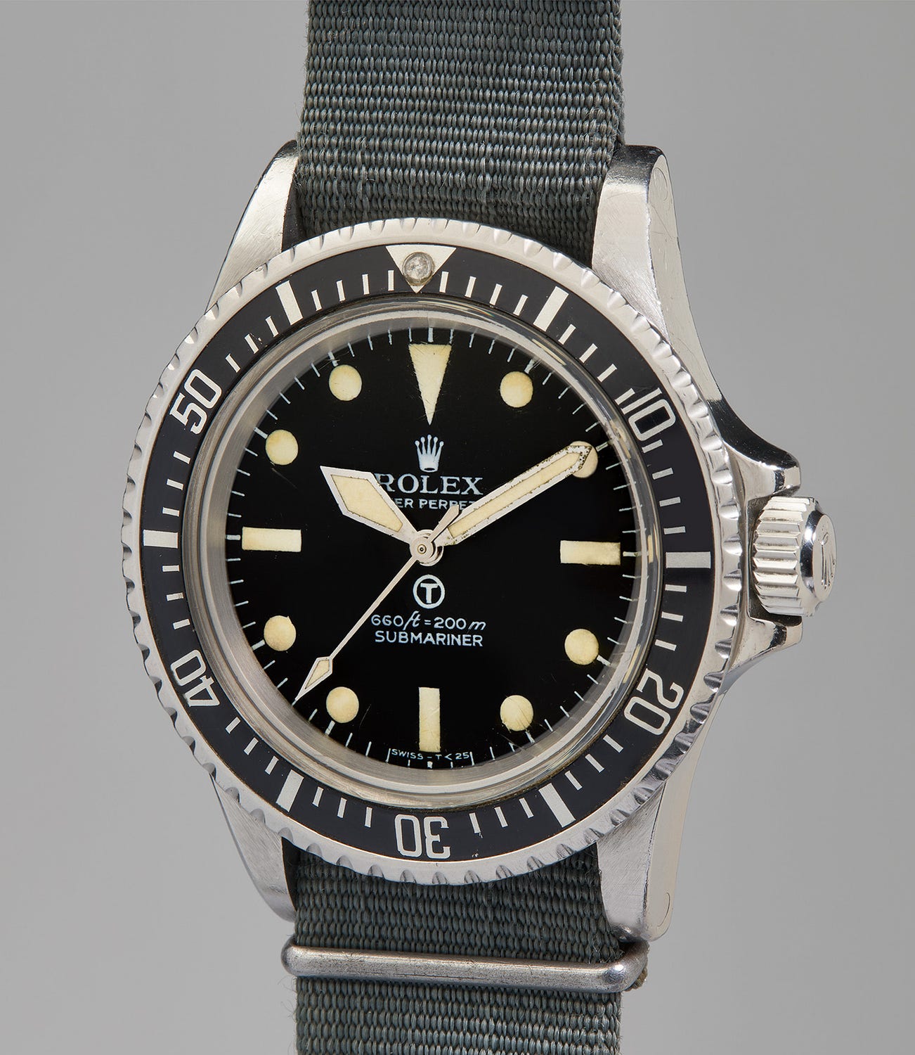 As a result, fully original “MilSubs” are very rare and highly collectible, given the past history with later owners reconfiguring their Submariner. The present lot is a delightful find because it is surprisingly complete and in original condition. Previously offered at auction by the original owner, the current owner, an internationally known Rolex collector, saw the appeal of the watch and upon purchase, sought to find a period correct 60-minute rotating bezel insert, replacing the service insert installed during a Rolex servicing in 2013. The watch is further remarkable for its very rare double reference, with the 5513 displayed between the lugs and the number 5517 on the underside of the bottom left lug. The caseback was hand-engraved “Wisemen” by the original owner - matching the name of the diver’s log used by Lt. Wiseman while deployed on the HMS Heron.