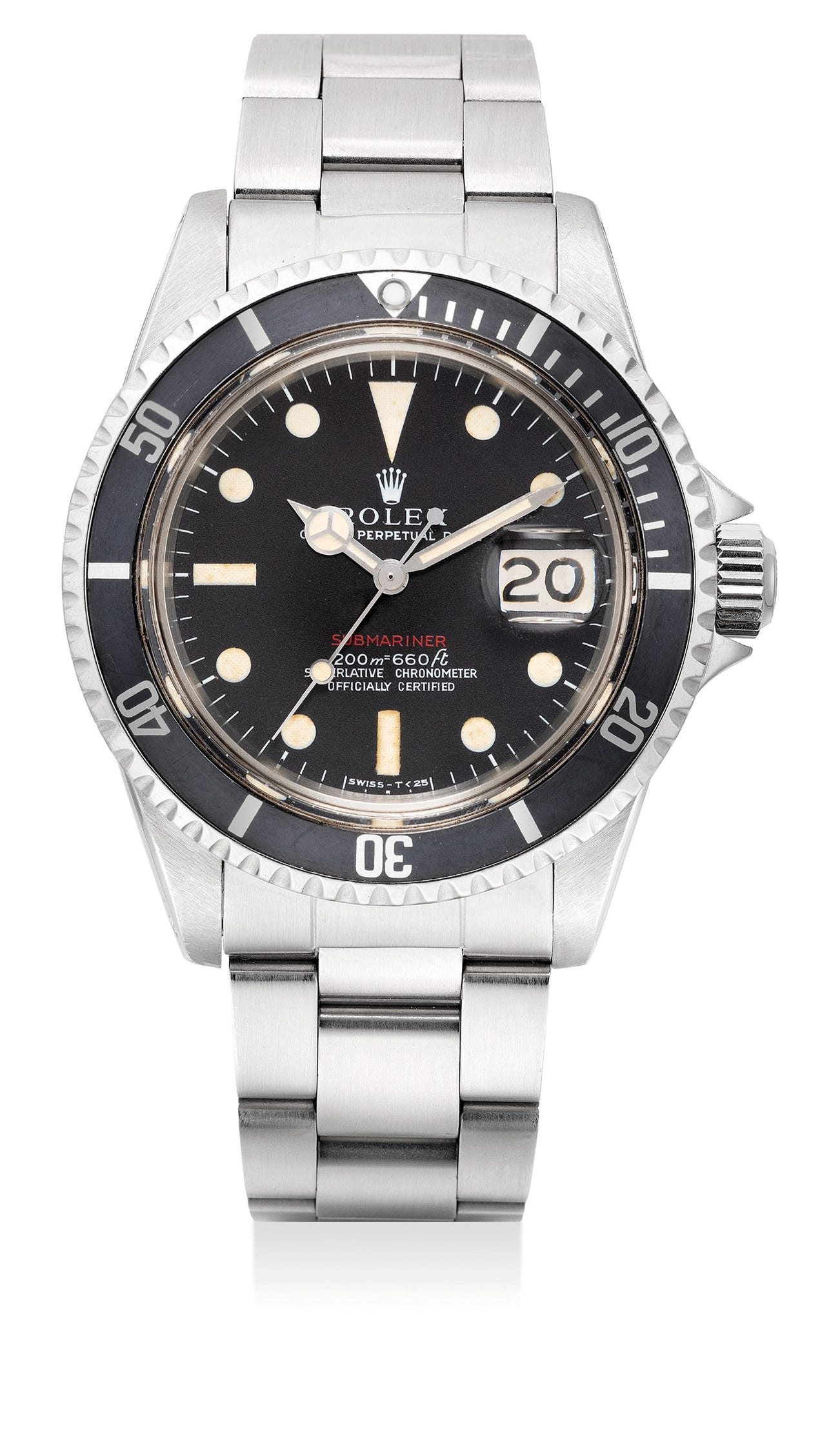 A very fine, attractive and rare stainless steel diver’s wristwatch with sweep center seconds, date, “Mark I” dial and bracelet