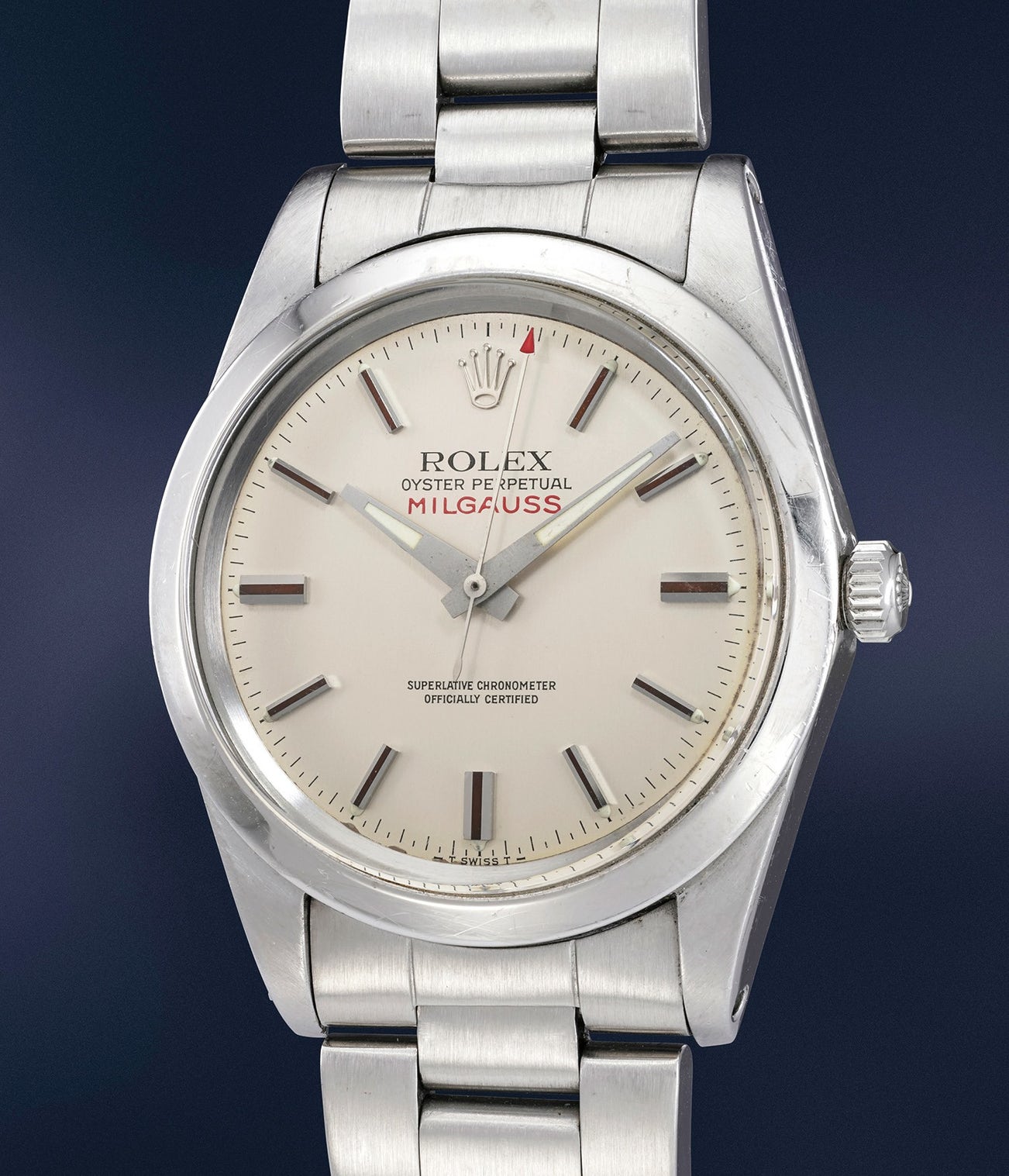 In the early 1960s, the newly introduced Rolex Milgauss reference 1019, like the present lot, replaced the original two versions: references 6541 and 6543. Significantly thinner than its predecessors, it was manufactured until 1990 and was available only in stainless steel.