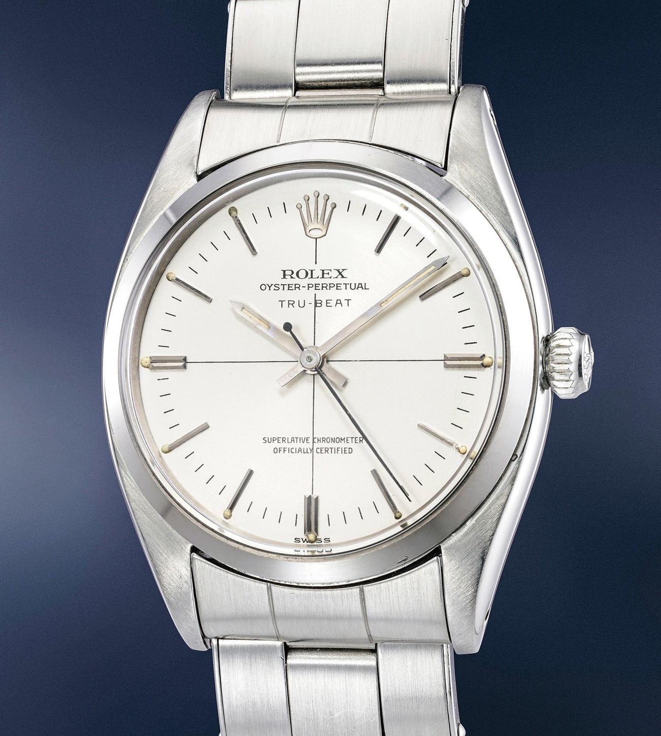 The Tru-Beat reference 6556 was launched in 1954 as a tool watch for doctors and healthcare workers. It is the only mechanical Rolex model to ever incorporate a “dead-beat” seconds mechanism that advances the seconds hand only once per second. This permitted more accurate readings of patients’ pulse rates, however the demand for such a timepiece was quite low, and the reference was soon discontinued. Amongst the small quantities produced, few have survived with the dead-beat mechanism of the Rolex caliber 1040 still intact.