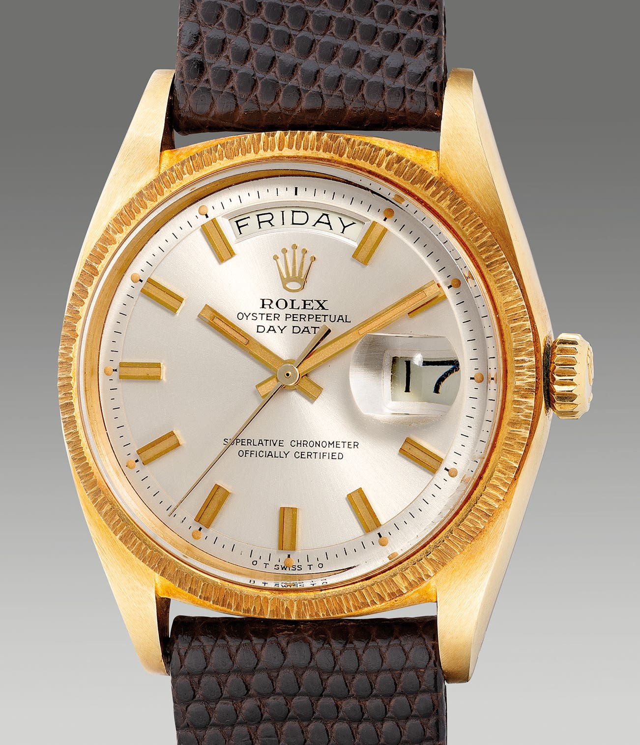 Presented in excellent overall condition, the present example is offered with its full set of accessories paired along with an original Rolex reptile strap and accompanied by its original blank guarantee.
