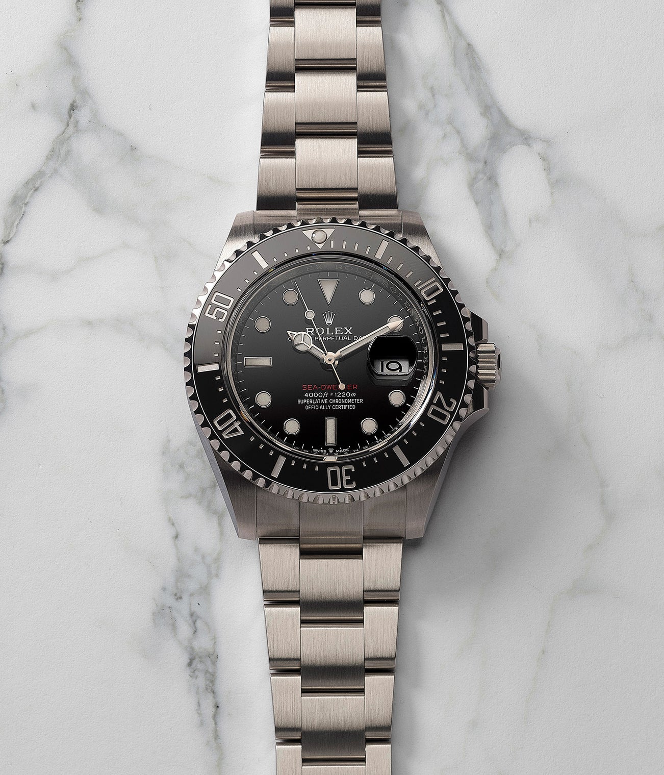 The Rolex Sea-Dweller ref. 126600 came as a surprise to many as there were newly updated features both aesthetically and technically. For the first time in 50 years, the new model featured the “SEA-DWELLER” designation in red writing taking inspiration from early examples of the ref. 1665. Furthermore, Rolex incorporated a Cyclopes lens on the surface of the crystal above the date aperture, initially witnessed in the Submariner ref. 1680. Another interesting upgrade was its larger case dimension measuring 43mm in diameter differing from all previous Sea-Dweller models with 40mm diameter cases. The caliber was upgraded to the new cal. 3235 providing enhanced efficiency and precision, as well as waterproof capabilities of up to 1220 meters.