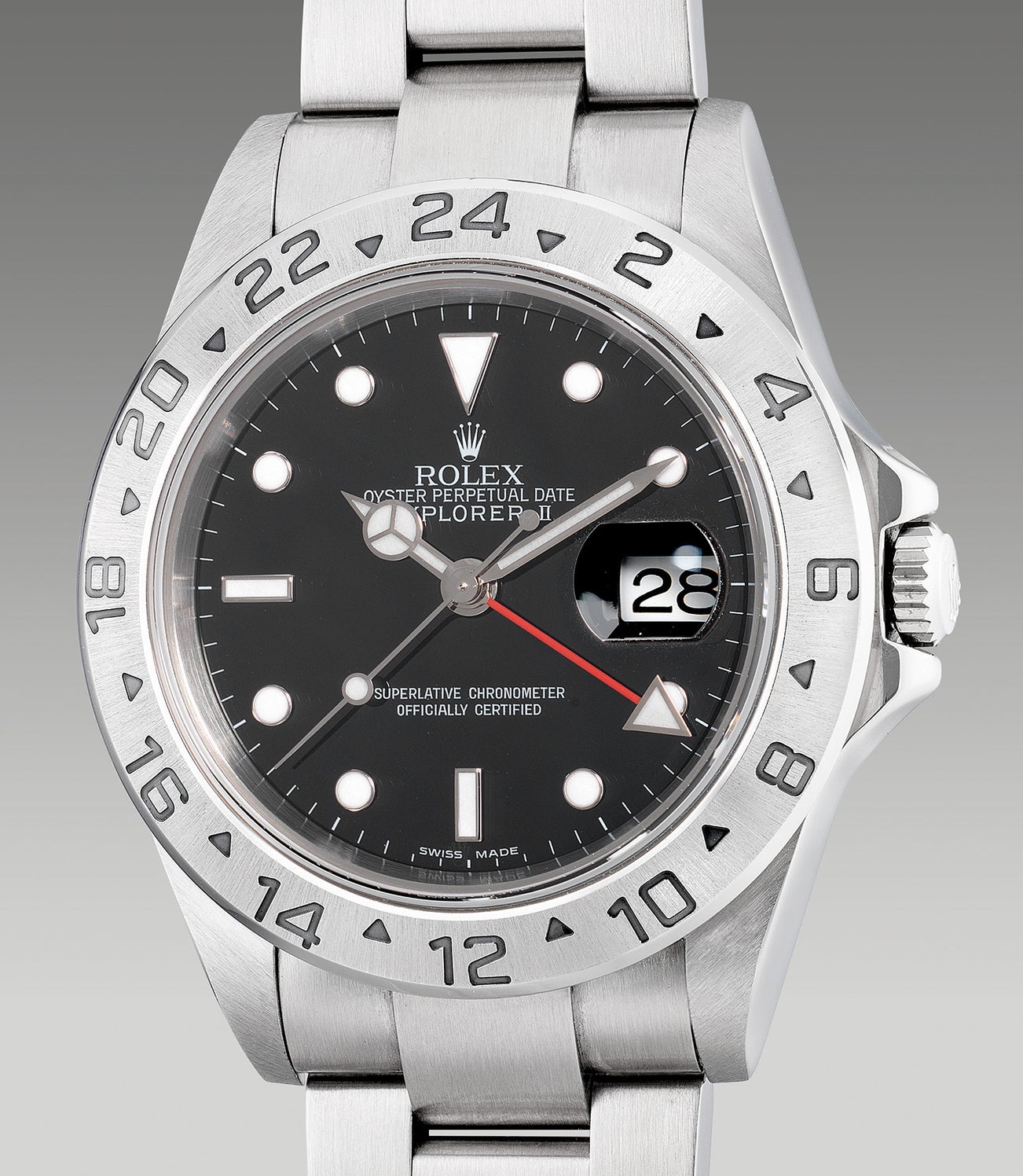 The present example Rolex Explorer II ref. 16570 with a black dial features the rare and desirable engraved caseback made for the SRR numbered 19 of a limited edition of 139 pieces. Offered in excellent overall condition with very minimal wear, it is further accompanied by its original guarantee card stamped Rolex London for the Special Reconnaissance Regiment and it is also complete with the limited edition certificate jointly issued by the regiment and Rolex.