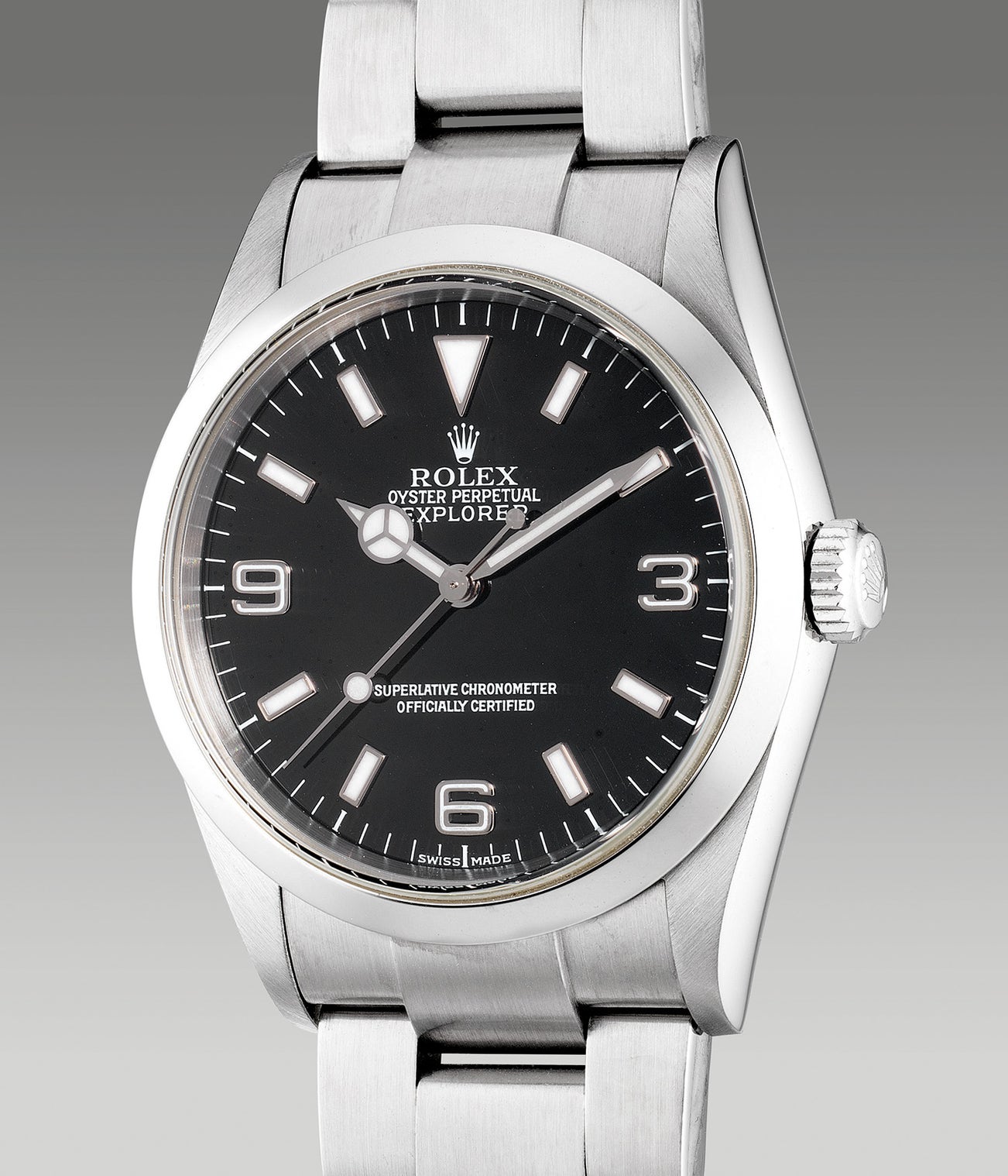 The Rolex Explorer ref. 114270 is the modern iteration launched in 2001 bearing its classic 36mm diameter Oyster case with its signature 3-6-9 Explorer dial. The present example ref. 114270 from circa 2001 with a “P” serial is one of the earliest examples of the reference and is offered with its original guarantee and box. The reference was discontinued in 2010 making way for the new ref. 214270, which was also recently discontinued in 2021 via the new ref. 124270.