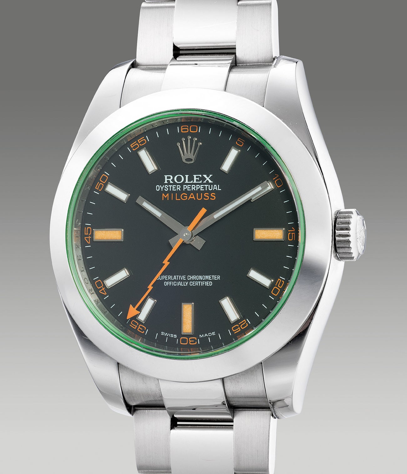 The present example Rolex Milgauss ref. 116400 GV with a black dial from circa 2008 is offered in excellent overall condition and is complete with its full set of accessories.