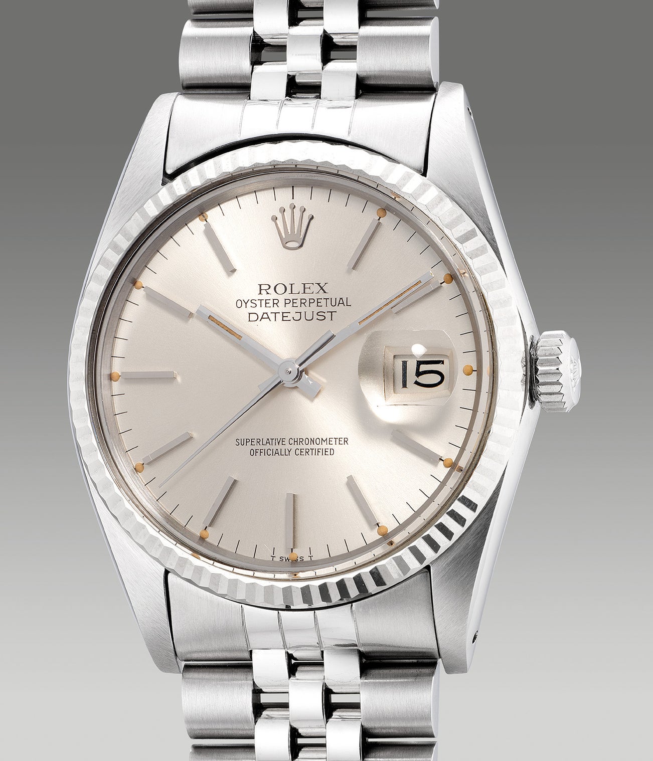 The present example Rolex Datejust ref. 16014 featuring a silvered dial with baton indexes is certainly a classic. Boasting an unpolished case with its original caseback sticker intact, this present timepiece is a perfect specimen of the short-lived reference.