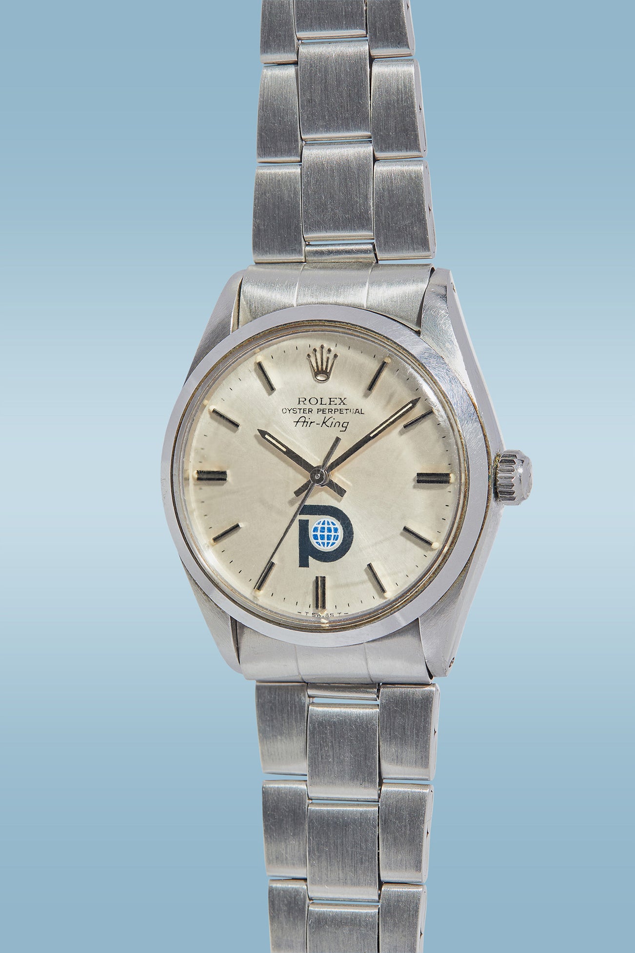 The dial of the Air-King is far simpler than the Datejust or Date, not only for its lack of a date window but since the movements were not chronometer-certified, they never bore this designation on the dial. The present reference 5500 has a rare and fascinating feature on the dial: the corporate logo of Pool-Intairdril factory applied by Rolex, an international oil company specializing in equipment and excavation supplies in the 1970s and 1980s. These watches were most likely given out as safety awards or to acknowledge the service of their employees, as seen by the engraving on the caseback of this example recognizing the service of a Mr. Kaufman beginning in July of 1978. Pool-Intairdril wasn’t the only company to see its logo on the dials of Air-Kings – American chains such as Winn-Dixie and Domino’s Pizza also gifted Air-Kings to their employees emblazoned with their corporate logos.