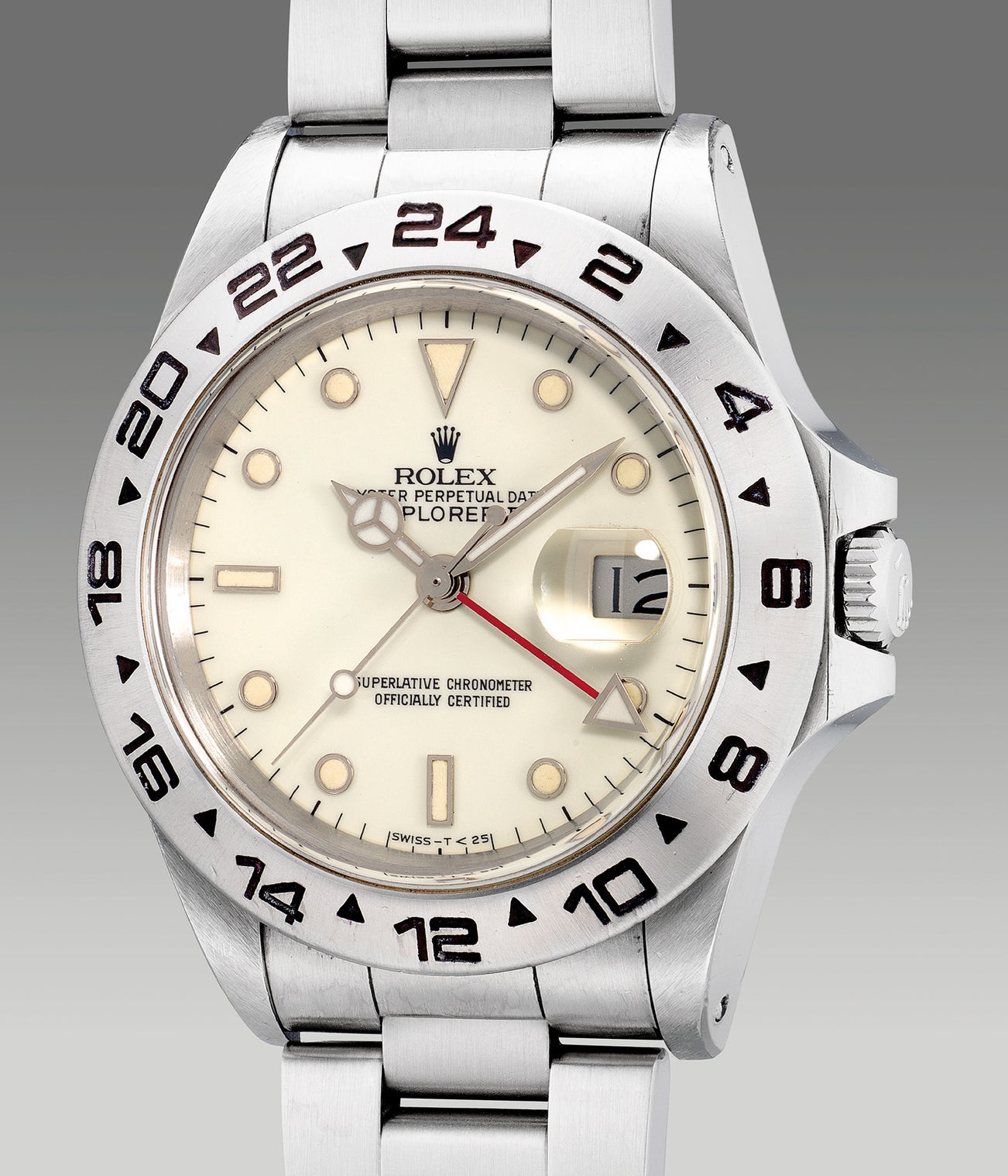 The present example from circa 1986 with a "cream" rail dial belongs to an early example of the reference featuring applied white gold luminous indexes. Furthermore, the dial has aged and developed a desirable creamy hue enhancing its vintage appeal dramatically. Accompanied by the original certificate and presented in unpolished condition, this present example is a great acquisition to start your vintage Rolex collection.