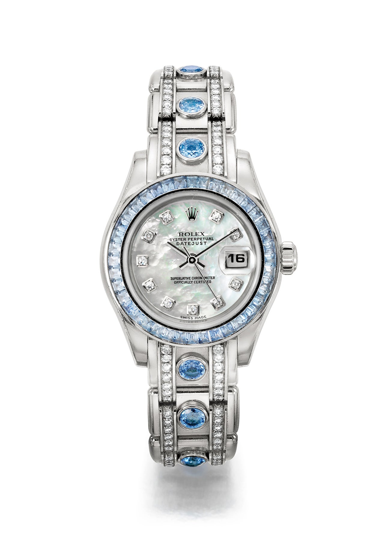A Diamond, Sapphire and Gold 'Pearlmaster Datejust' Wristwatch