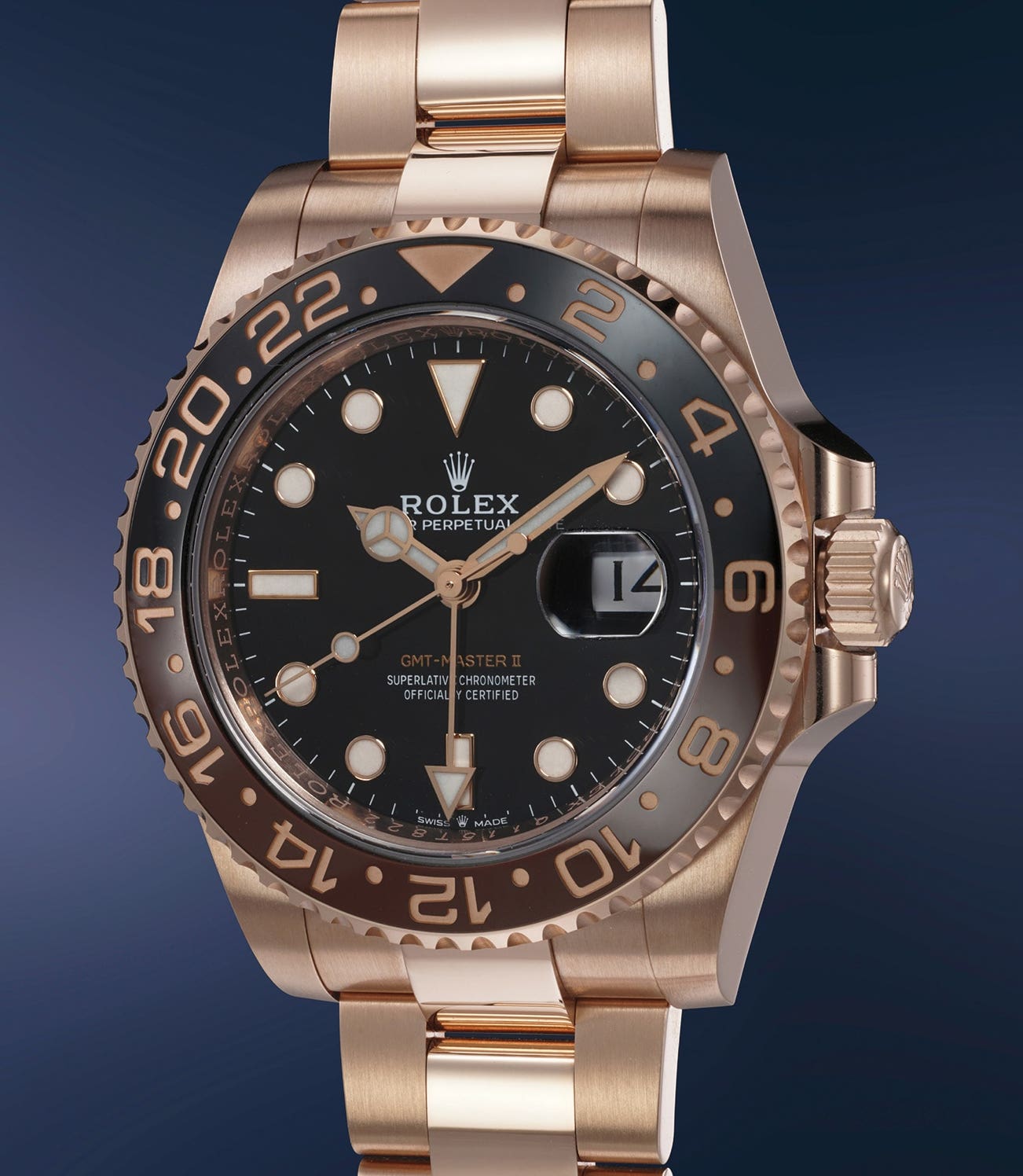 Everose gold was introduced by Rolex in 2005 and consists of an alloy of yellow gold, copper and platinum. Adding platinum in the gold combination allows the case to keep its pink tone over the years.