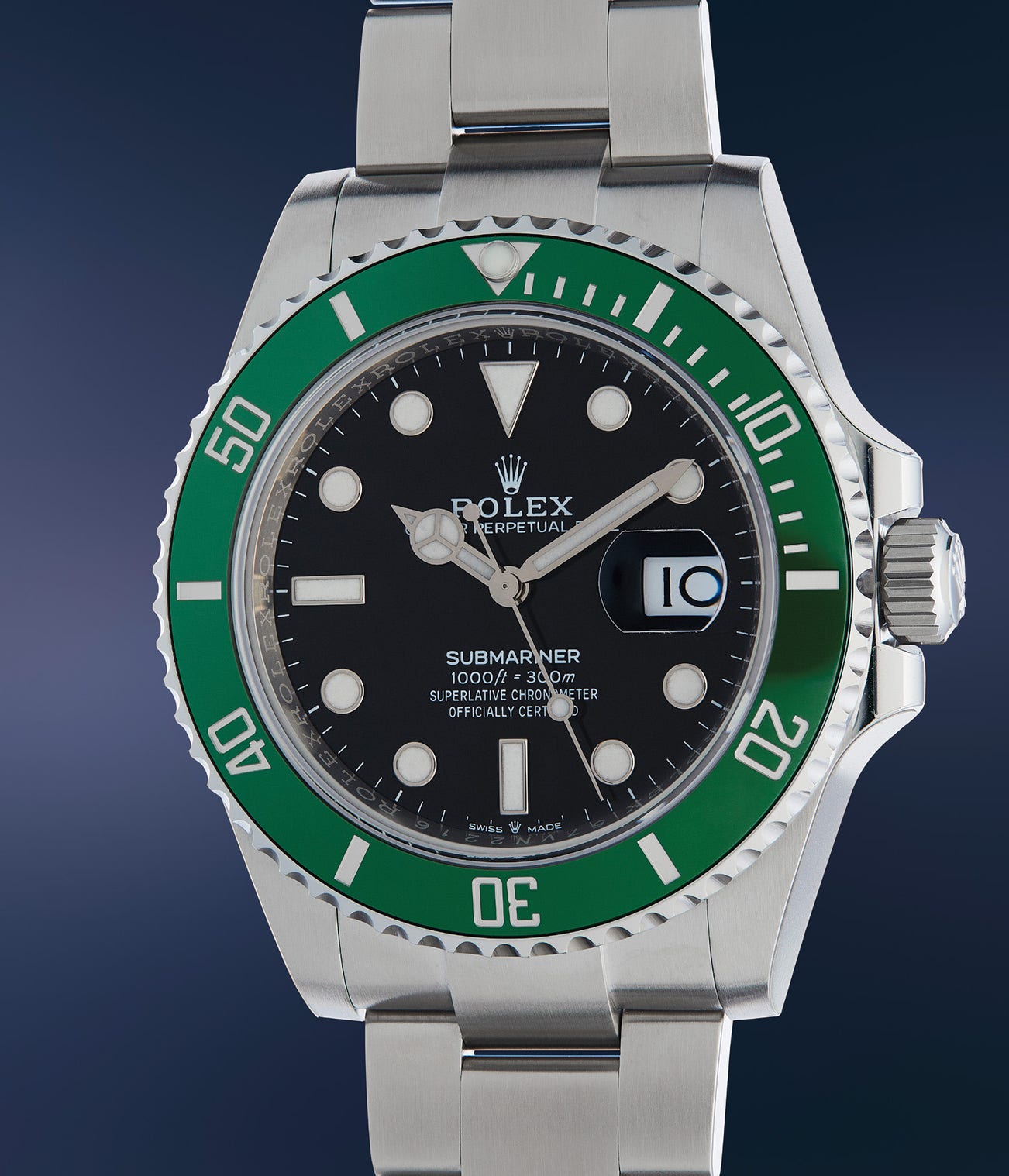 Offered in new old stock condition, this reference 126610LV retains its factory wrap on the case and clasp, along with all original accessories, guarantee, wallet, product literature and presentation box. This example from 2021 is a rare opportunity for a collector to own one of the newest Rolex models.