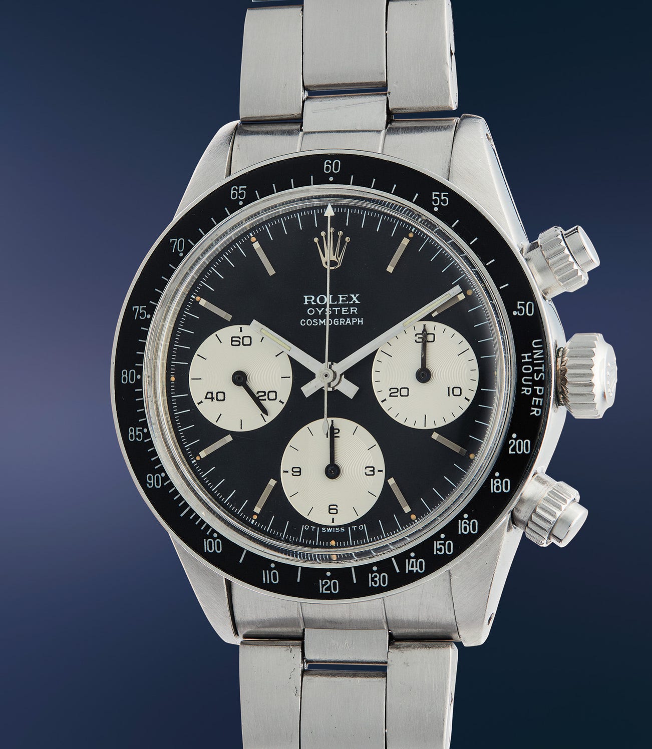 The present example from 1971 is a rare and early variant, with an elegant and attractive "Sigma’" dial. The "T Swiss T" signature at 6 o'clock is flanked by the Greek symbol Sigma, denoting the markers and hands are made of white gold. Research indicates the "Sigma" notation appeared on Rolex dials in the early 1970s, following the issue of a set of guidelines by APRIOR (Association pour la promotion industrielle de l’or: Association for the industrial promotion of gold). Such guidelines indeed suggested (but it was not compulsory, hence not all dials with gold bear the sigma) to add the Greek letter sigma to the dial of watches bearing gold details (such as the markers, in this case). Possibly due to the cryptic nature of this designation, it was abandoned after a few years.