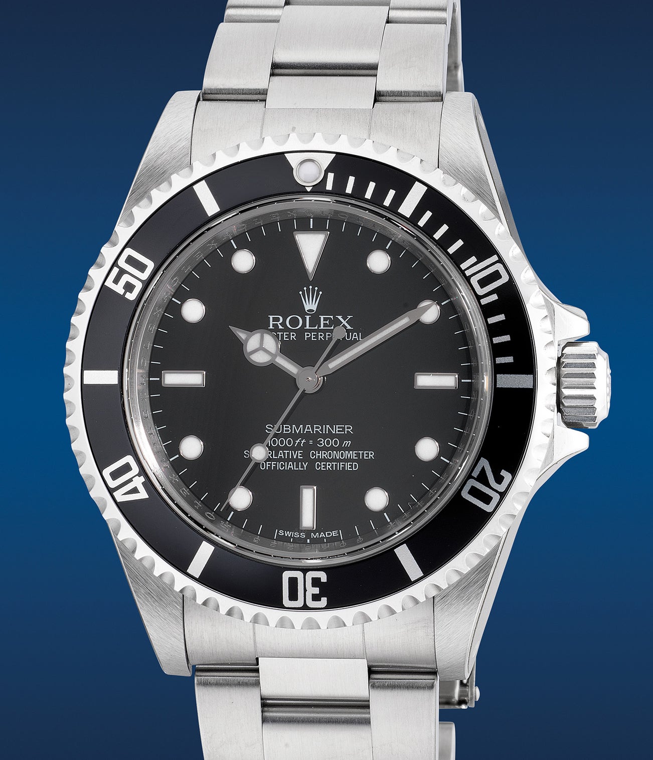 The present example Rolex Submariner ref. 14060M with a “G” serial from circa 2010 offered in “new-old-stock” condition with its full factory protective stickers intact is one of the last examples to leave the Rolex factory before it was discontinued in the same year. It is complete with its full set of accessories including an undated guarantee card stamped by a local Hong Kong retailer.