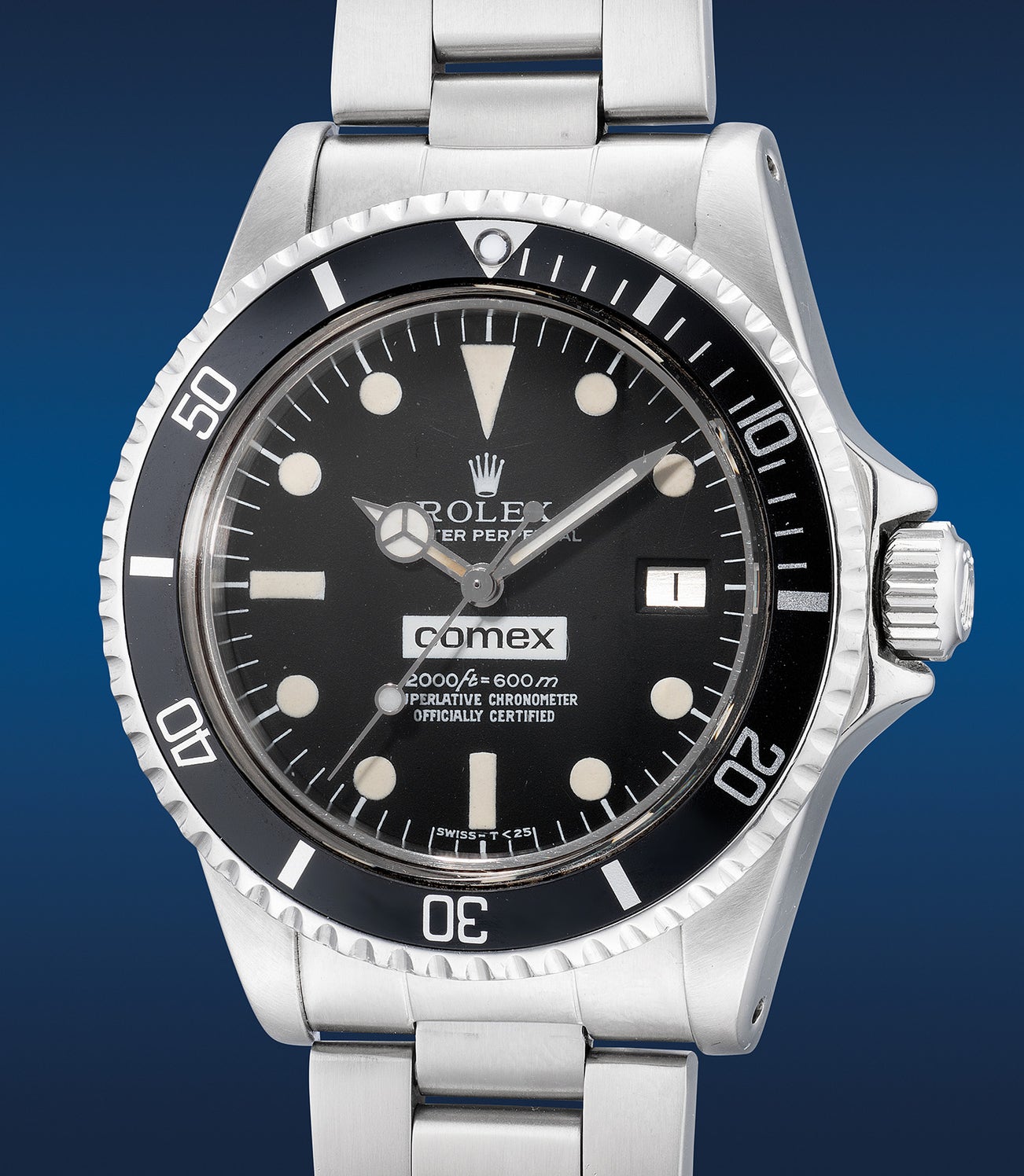 The dial’s luminous hour markers have gracefully aged to a pleasing ivory-coloured tone, identically matching the colour of the hands over the years and preserved in a overall wonderful condition, the reference 1665 COMEX is quintessentially regarded by many collectors as the ‘COMEX Rolex’.