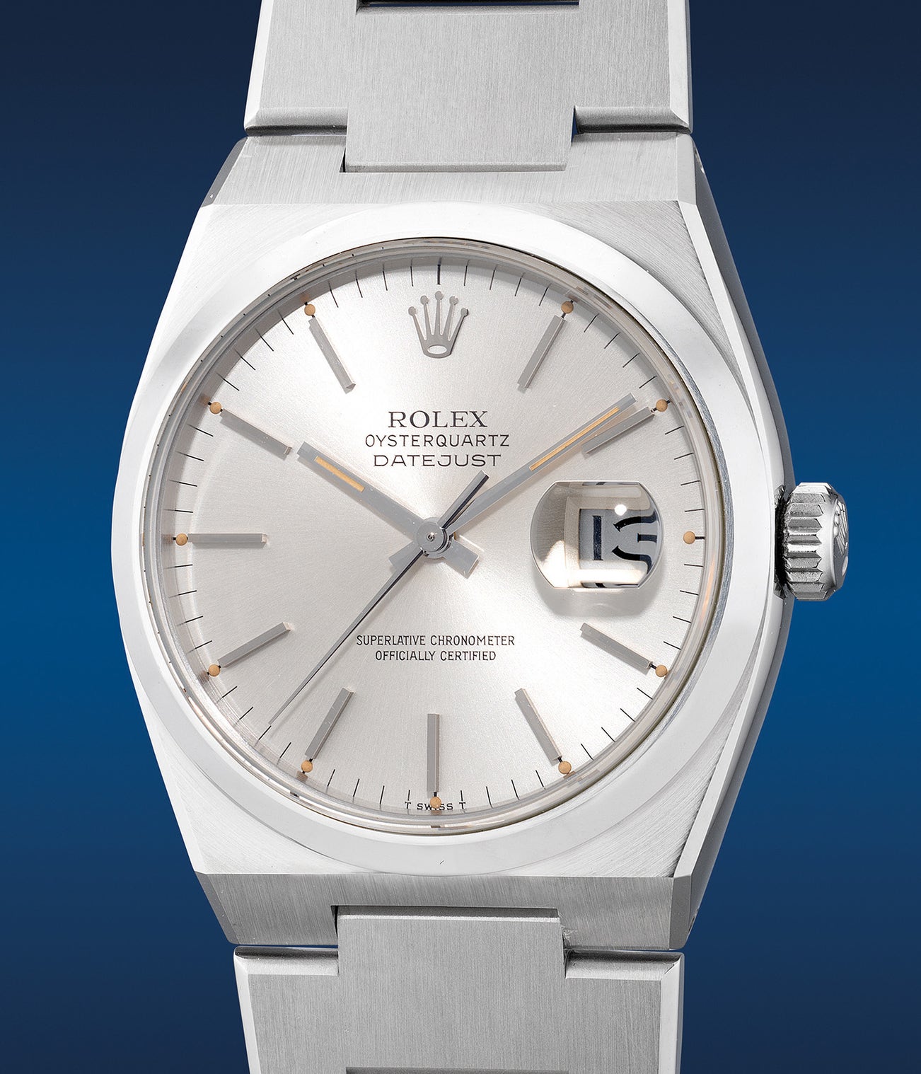 The Rolex Oysterquartz Datejust ref. 17000, first appeared in 1977, was introduced during the time when the brand sought to meet clients’ demands for quartz watch movements, and can be considered as the grandfather of all subsequent quartz watches created by the brand, such as the Oysterquartz Day-Date.