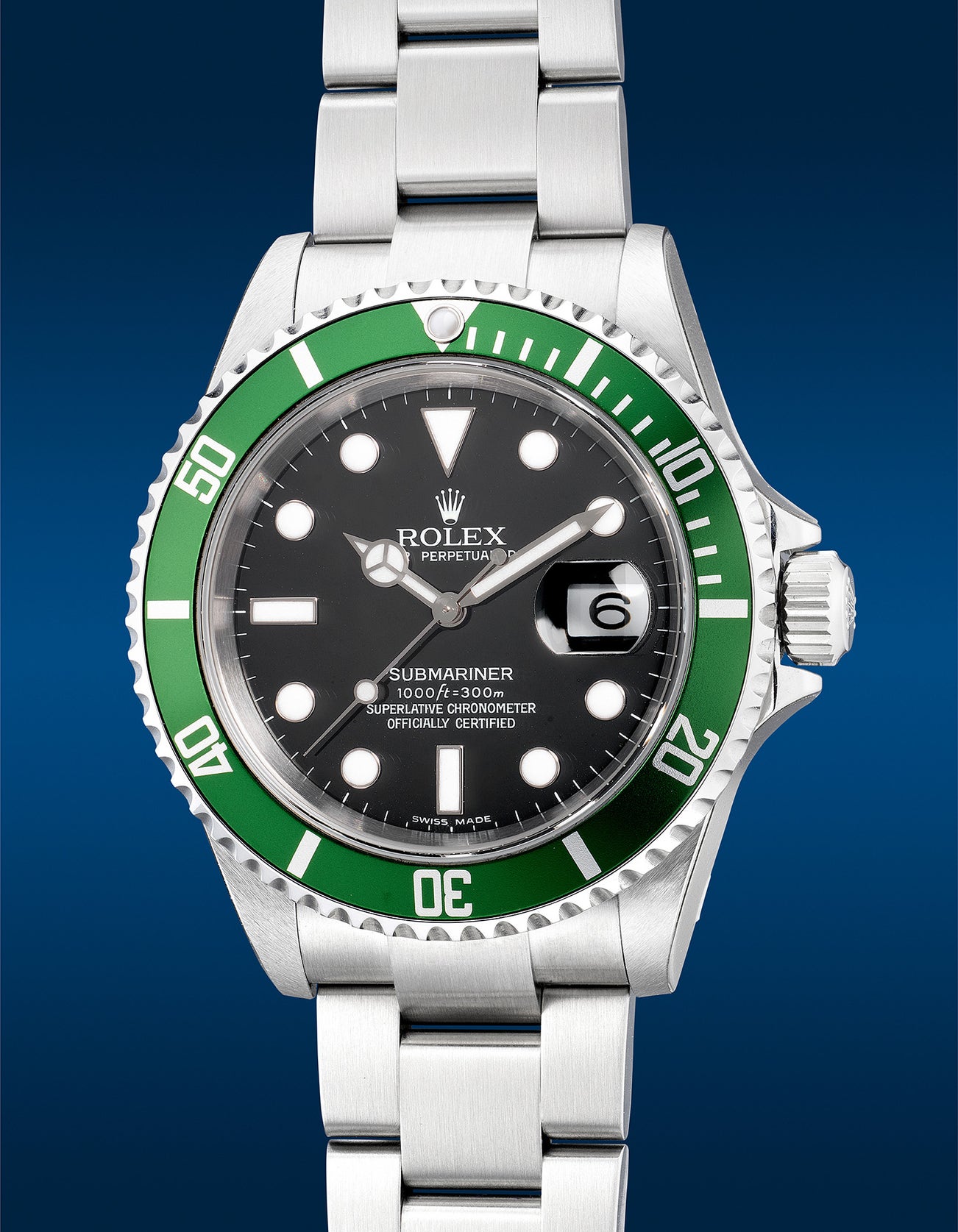 The present Rolex Submariner ref. 16610LV from circa 2005 is preserved in pristine “new-old-stock” condition retaining its original caseband stickers and green sticker on its caseback. For collectors seeking for an unworn example with its complete set of accessories, this is the one to go for.