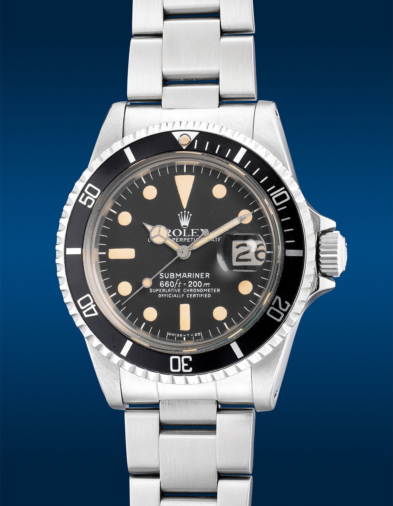 An attractive and well-preserved stainless steel diver’s wristwatch with center seconds, date, MK1 dial and bracelet