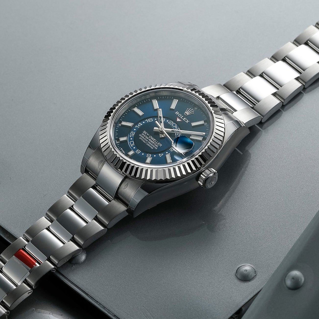- The present watch is cased in white Rolesor, a metal described by Rolex as "a meeting of two metals" keeping the luster and nobility of the gold and adding the strength and reliability of the stainless steel.
