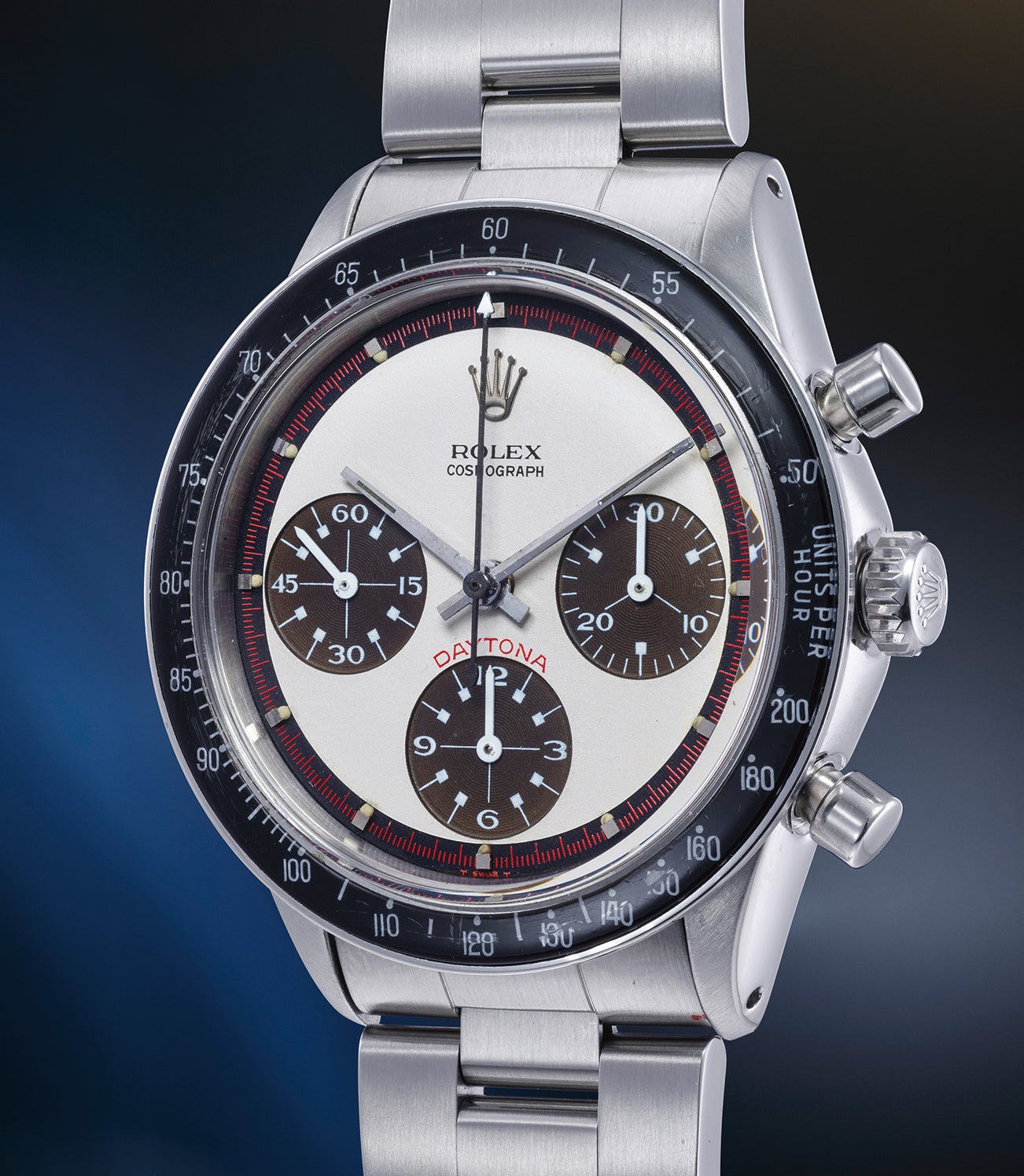 Last appearing at auction in 2020, the present piece was in the meanwhile mechanically serviced by Bucherer. Denoting knowledge and respect for such an important timepiece, no important component was exchanged. Only the joints and the crystal have been upgraded and furthermore the old crystal still accompanies the watch, thus fully maintaining the originality of the piece while at the same time ensuring its perfect mechanical functioning. Furthermore, an Oyster bracelet was added to the piece, thus offering the possibility of wearing the piece with the more elegant leather strap or with the more sporty iconic Oyster bracelet - a further expansion of the already remarkable wearability of a Paul Newman Daytona.