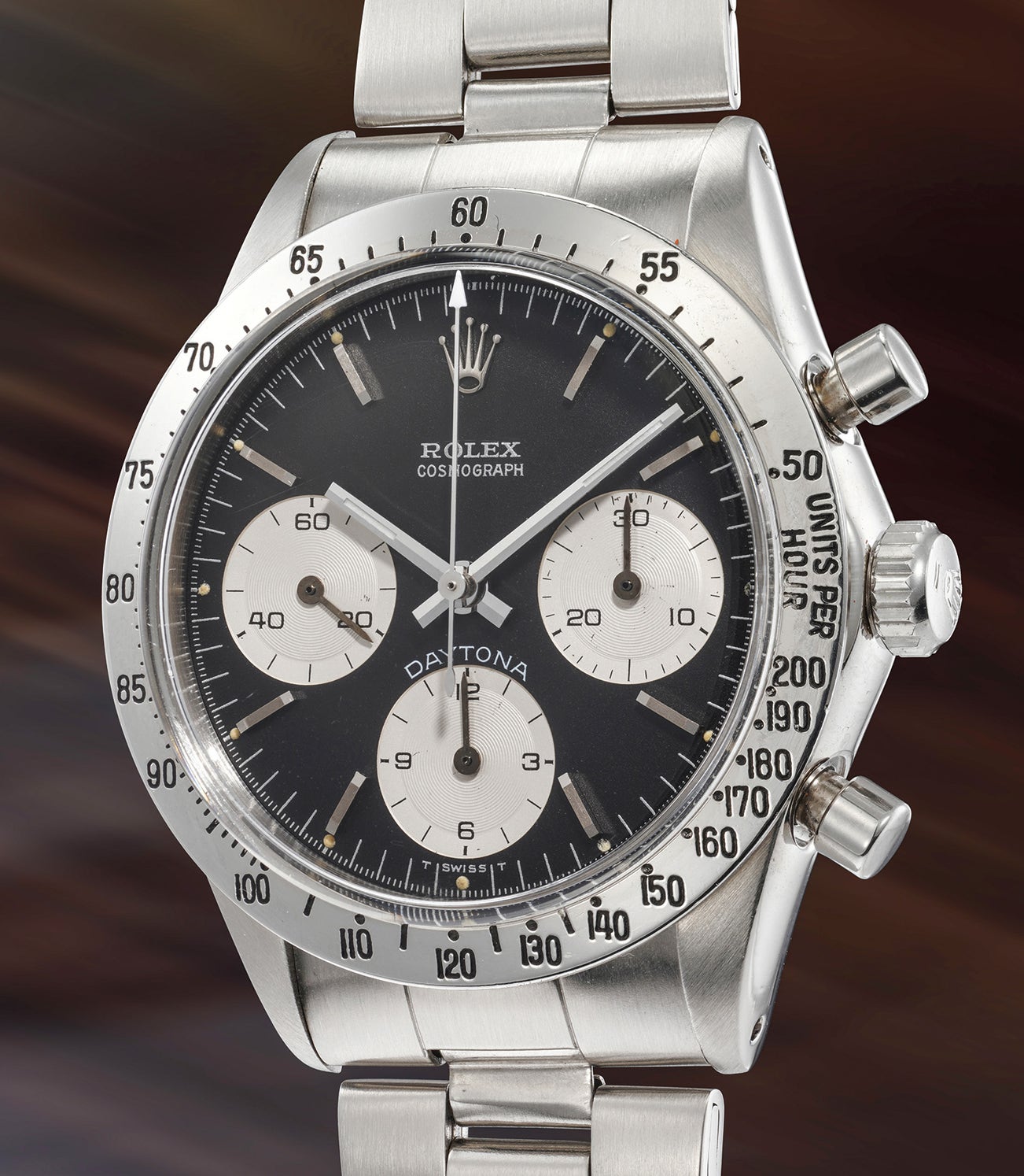 Sure to delight discerning collectors who appreciate the racing legends, the present Rolex Daytona reference 6239 is further offered in excellent overall condition further elevating this timepieces desirability.